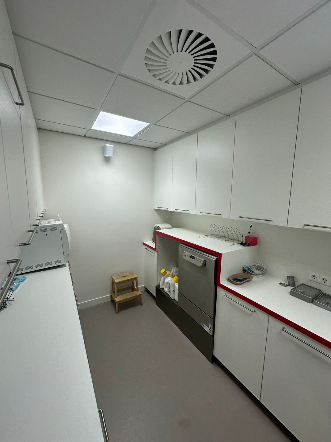 De meeste vertrekken zijn afgebouwd en ingericht. Twee behandelkamers zijn voorbereid en voor 80% gereed, daar hoeft alleen de bedieningsapparatuur voor de tandarts nog in.