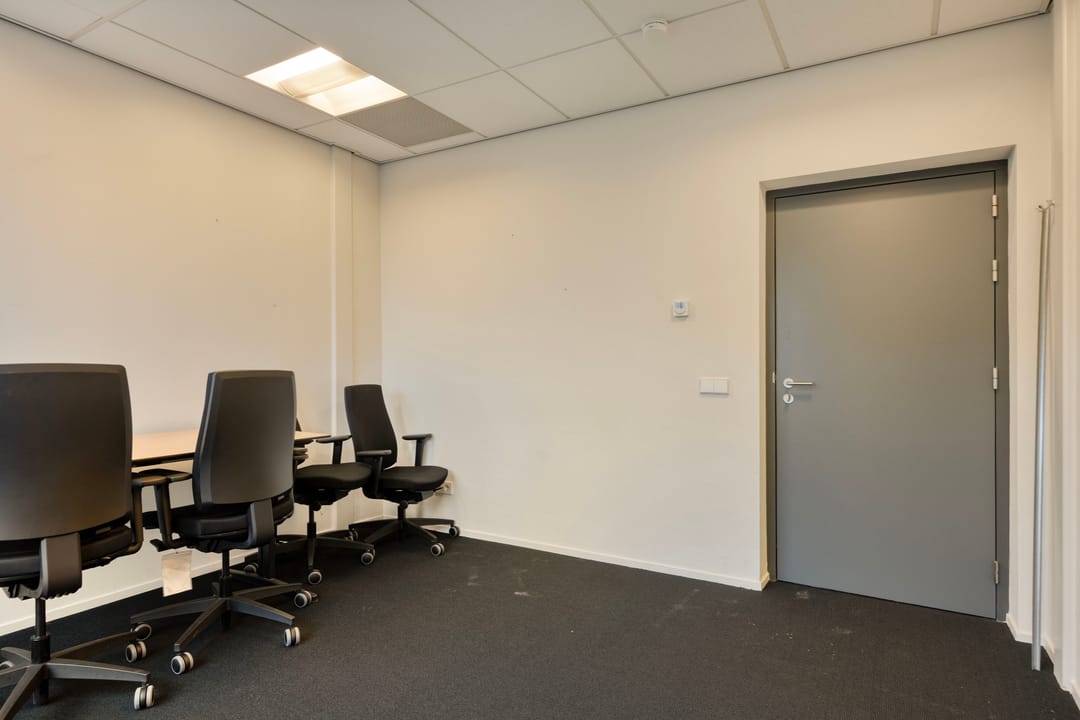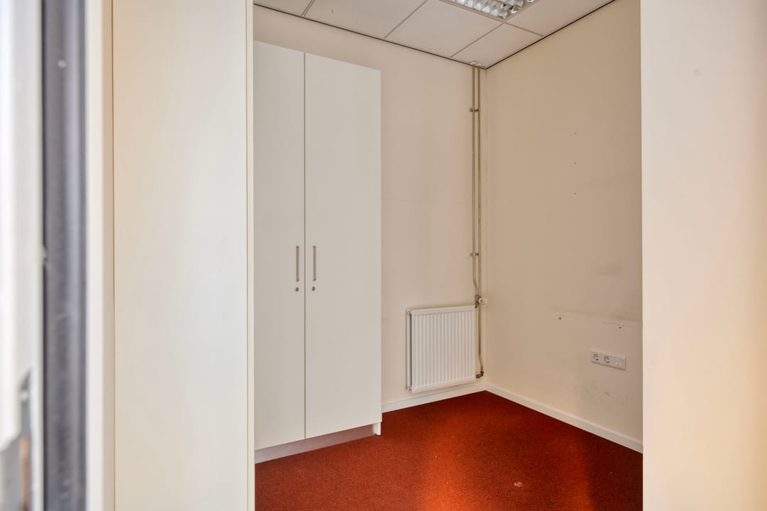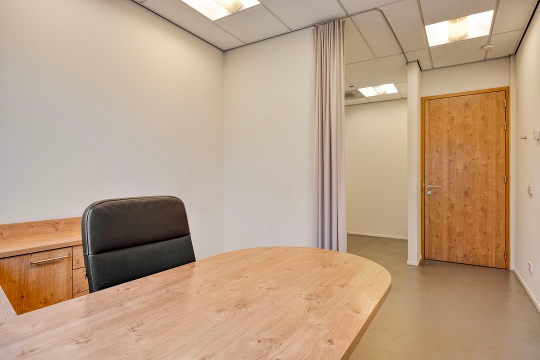 Entree, linkervleugel ingedeeld in diverse kantoorkamers en een aparte entree. Tevens zijn in dit deel toiletten en een MIVA aanwezig. Deze ruimte heeft tevens een toegang vanuit de buitenzijde. Op de begane grond is één ruimte beschikbaar.