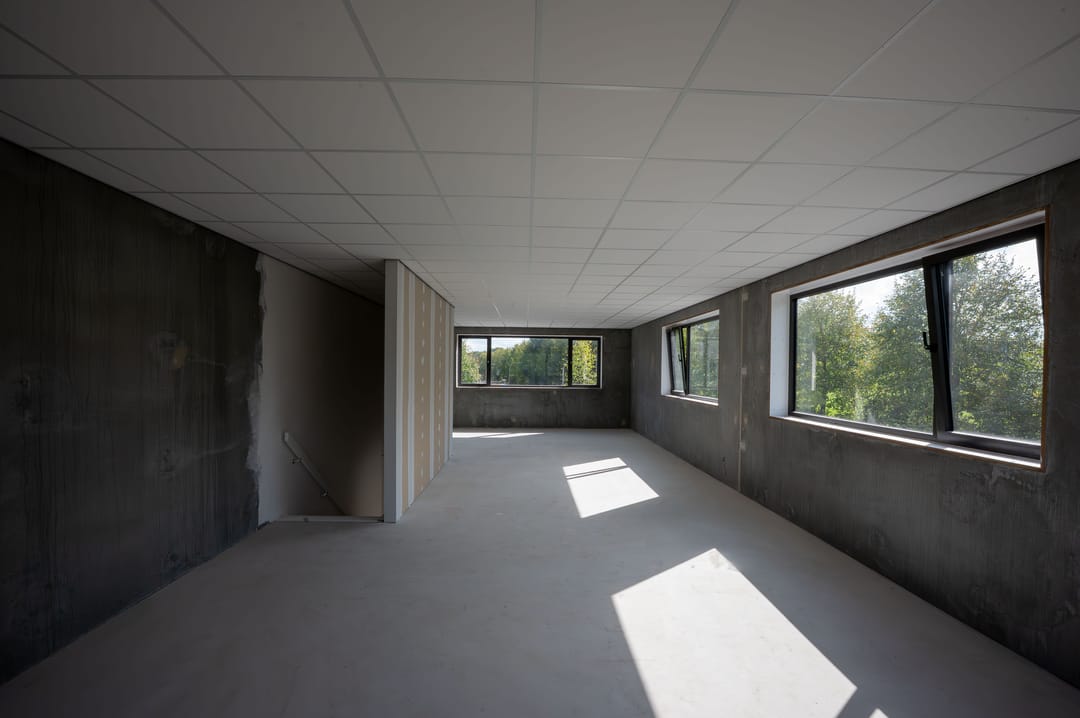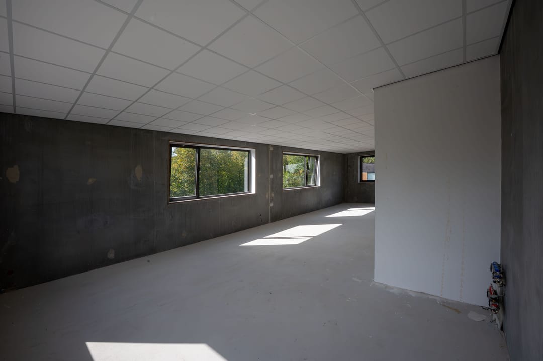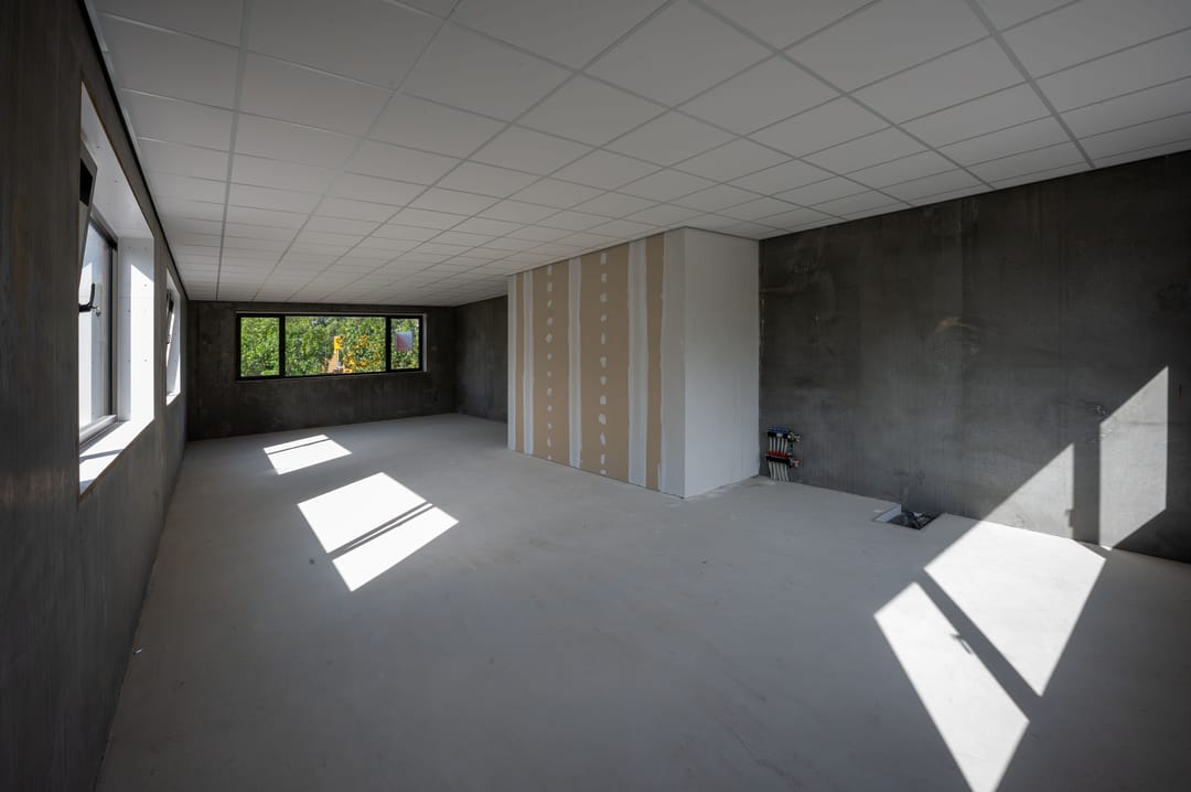 - Open indeling, flexibel in te delen (bijvoorbeeld 3 behandelkamers of kantoren)