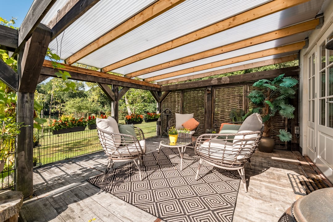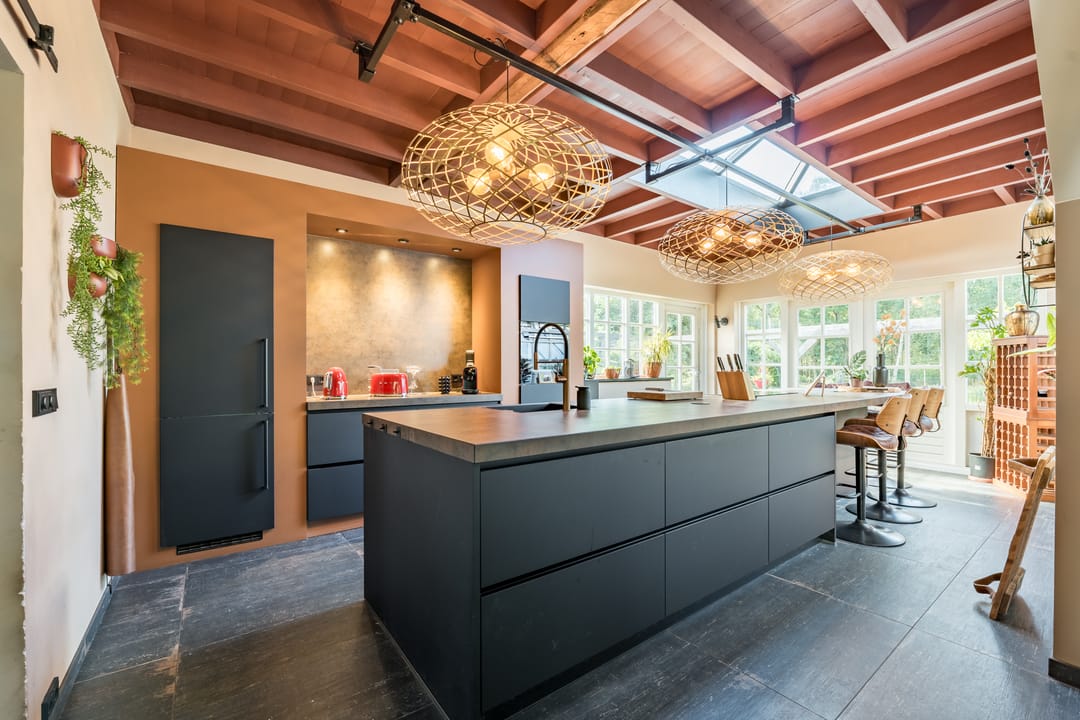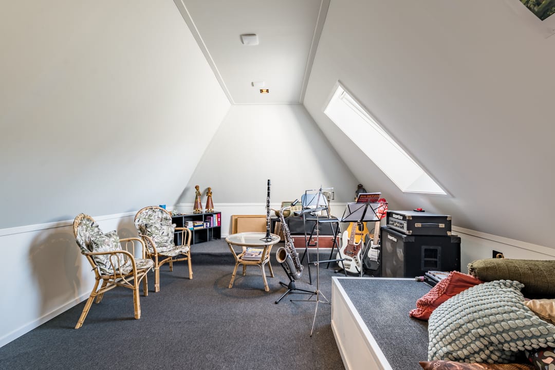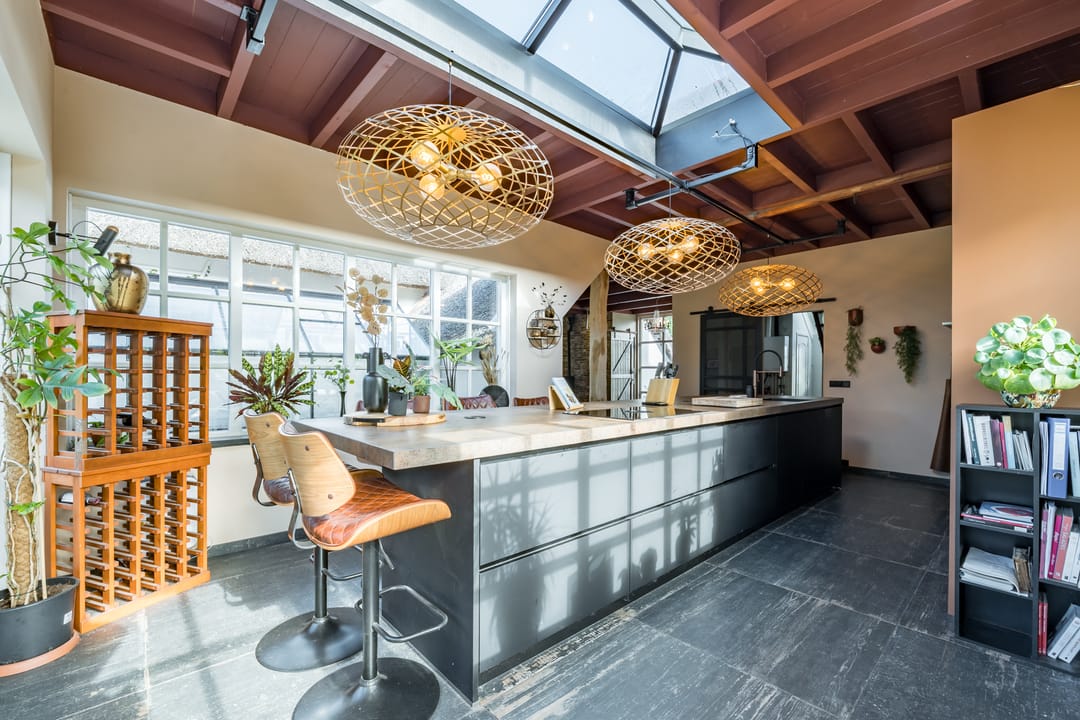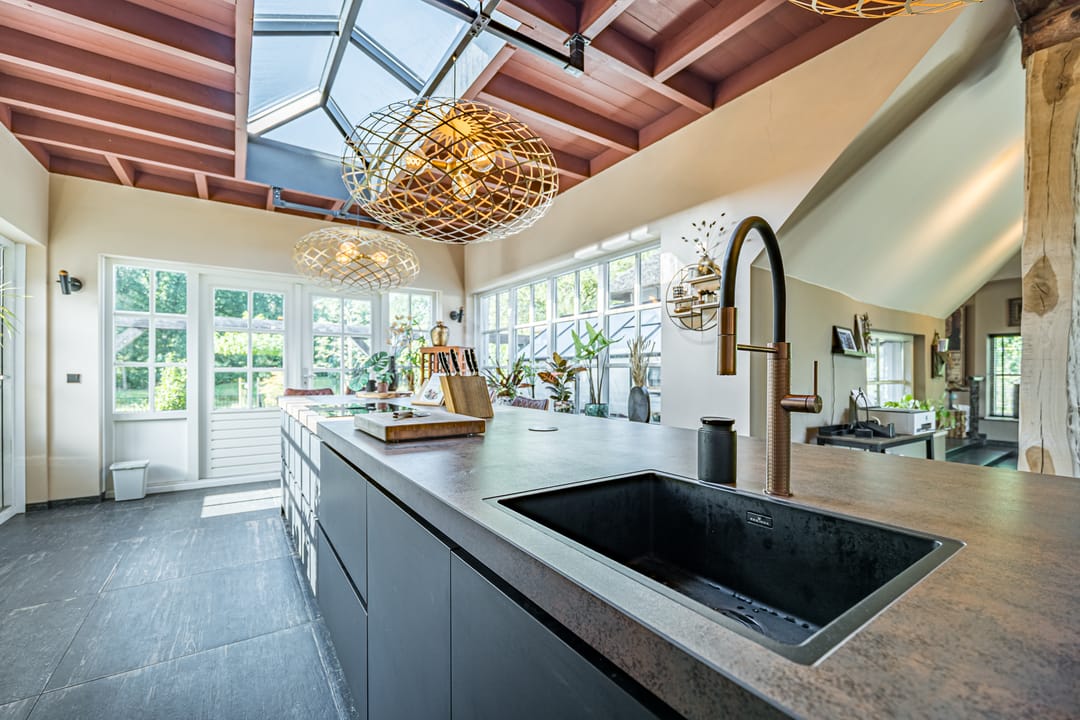 De boerderij is met veel liefde, aandacht en vakmanschap verbouwd. Binnen valt direct de royale, lichte woonkamer op met een karakteristieke gebintconstructie en openslaande deuren naar de tuin. De leefkeuken vormt het hart van het huis – op maat ontworpen en hoogwaardig afgewerkt, met daarnaast een eetgedeelte dat ruimte biedt voor een imposante eettafel voor lange diners of informele bijeenkomsten.