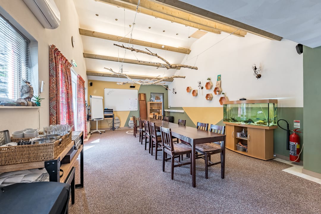 • Het bijgebouw is voorzien van een semiprofessionele keuken, kantoorruimte, sanitaire voorzieningen en nog veel meer.