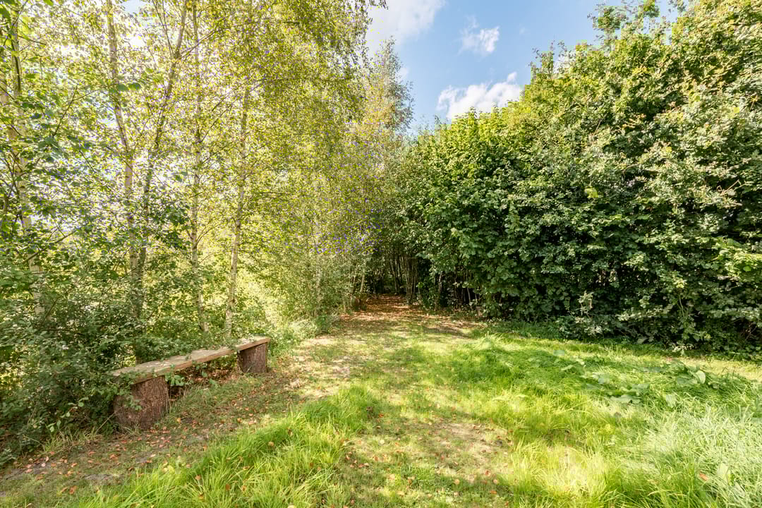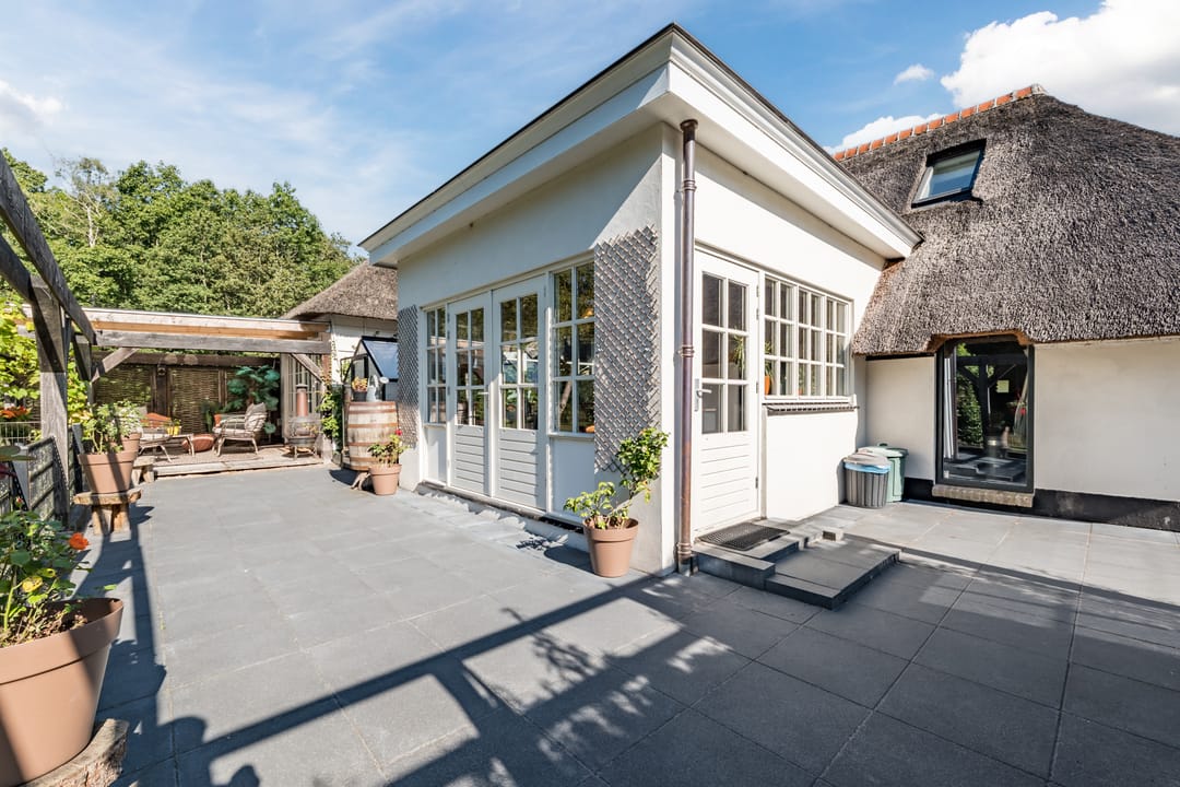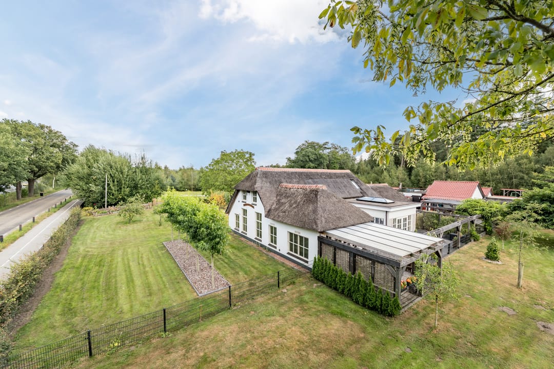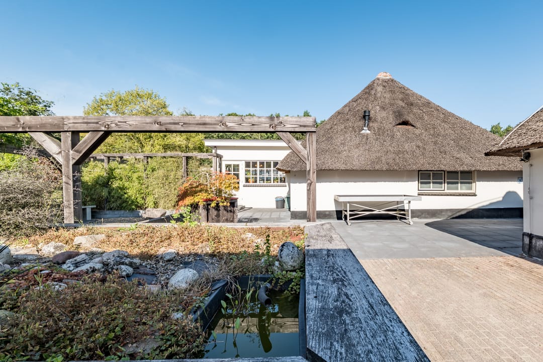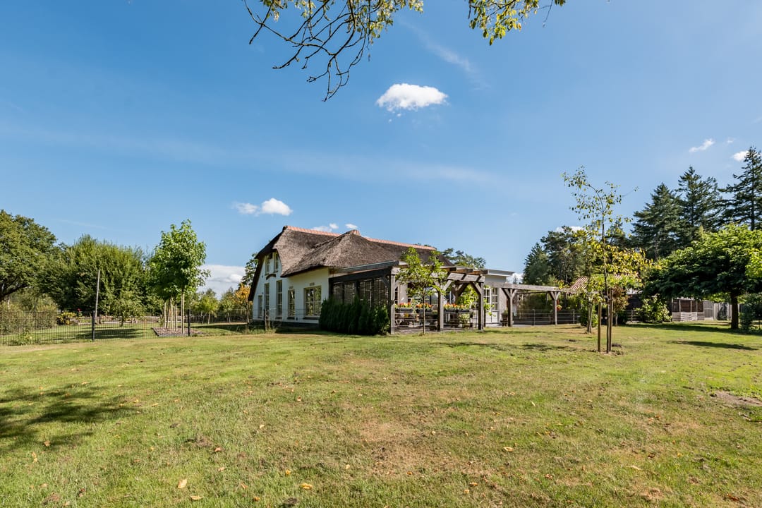 De tuin rondom de woning is parkachtig aangelegd, met royale gazons, bloeiende borders, een bosrand en sierbestrating. De grote vijver met eiland vormt een opvallend middelpunt en brengt de natuur tot aan de woning. Dankzij de ligging aan het bos, nabij een ecoduct en op steenworpafstand van natuurgebied het Terhorsterzand, heerst hier een gevoel van rust, ruimte en verbondenheid met het landschap.
