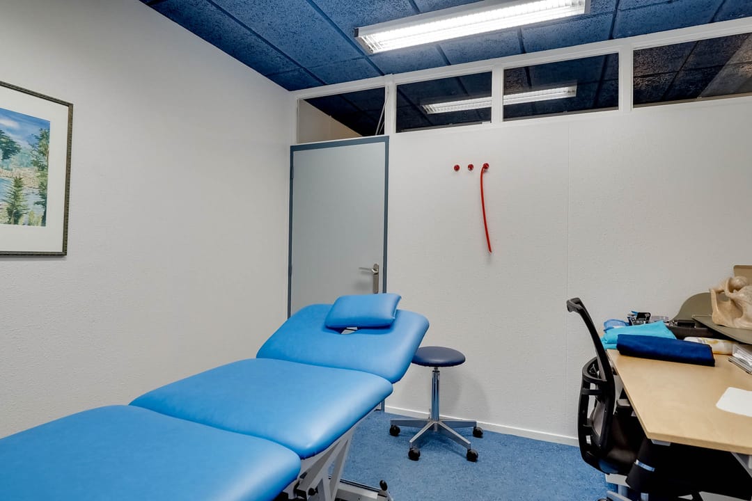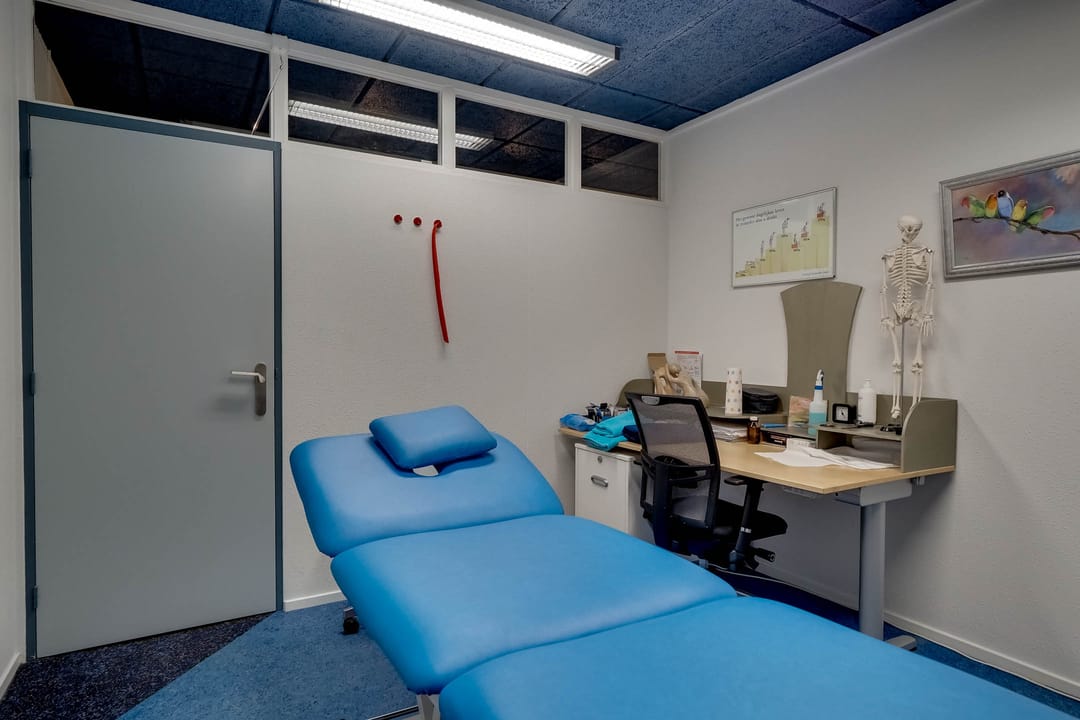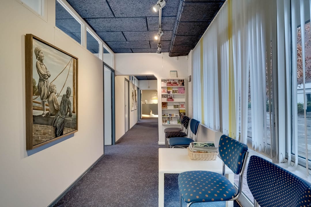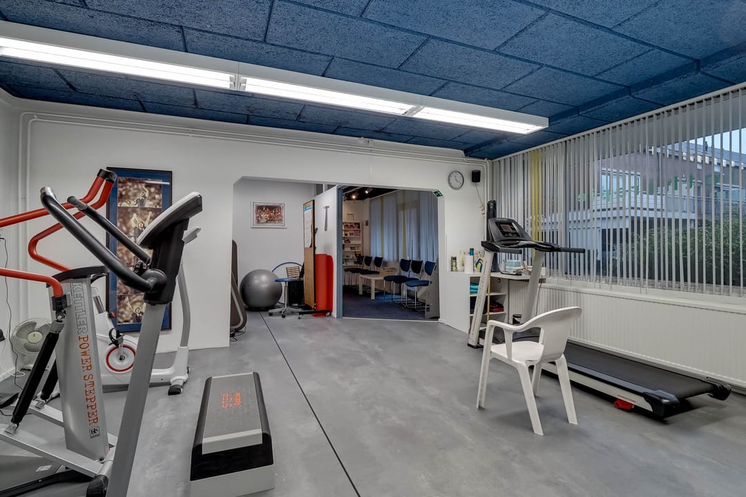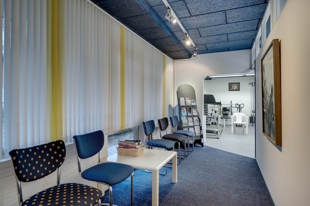 Entree met ruime hal / wachtruimte en receptie, sanitaire ruimte, een vijftal behandelruimtes en een oefenruimte.