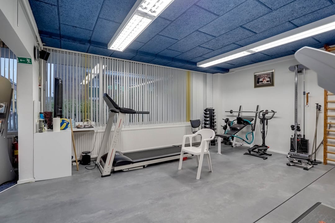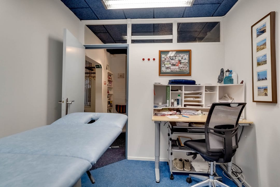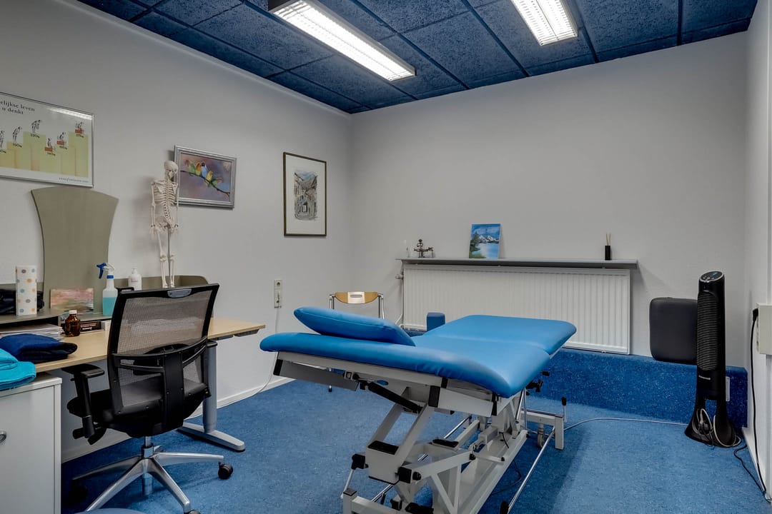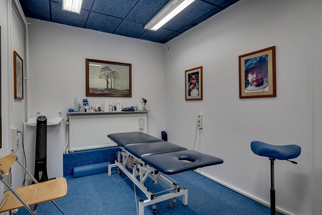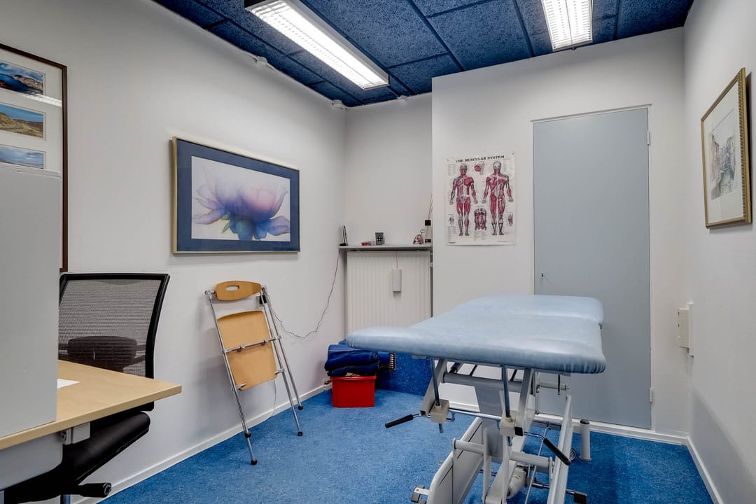 Entree met ruime hal / wachtruimte en receptie, sanitaire ruimte, een vijftal behandelruimtes en een oefenruimte.