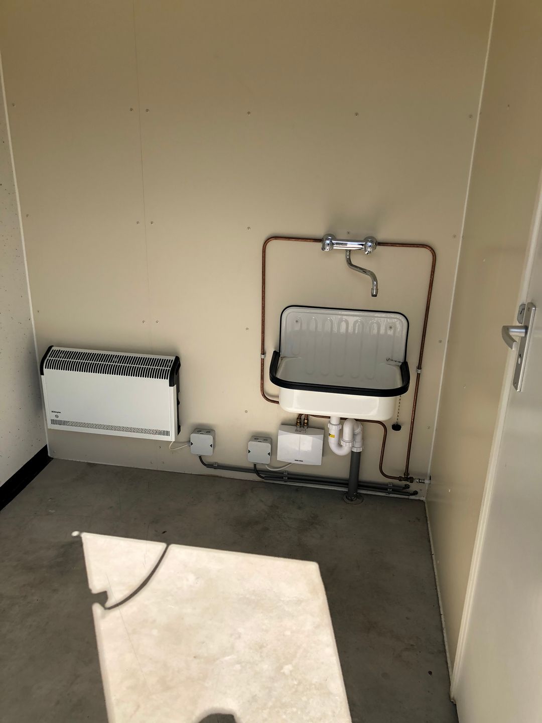 • Voorzien van overheaddeur, lichtpunt en wandcontactdoos;