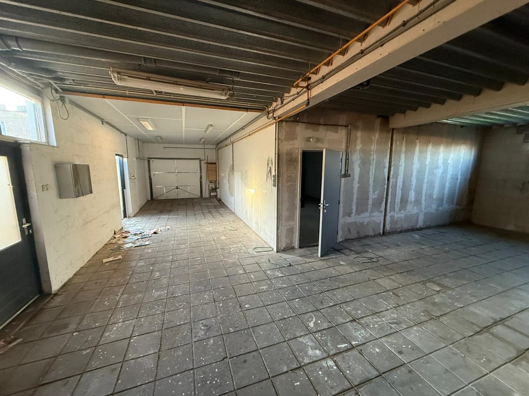 Ruime opslagruimte van circa 190 m² met toegang door middel van garage / kanteldeur en loopdeuren te huur. De ruimte is eventueel ook in gedeelten te huur.