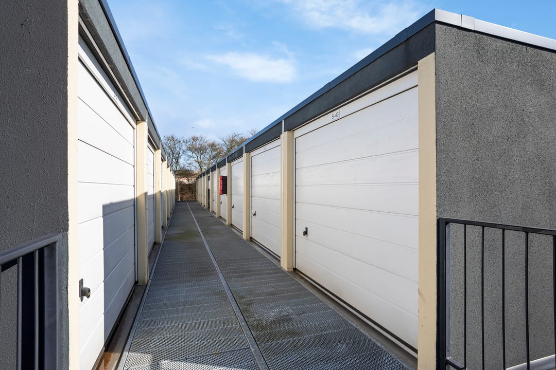 De garagebox is gelegen op de 1e etage van een beveiligd en afgesloten terrein dat 24/7 toegankelijk is.