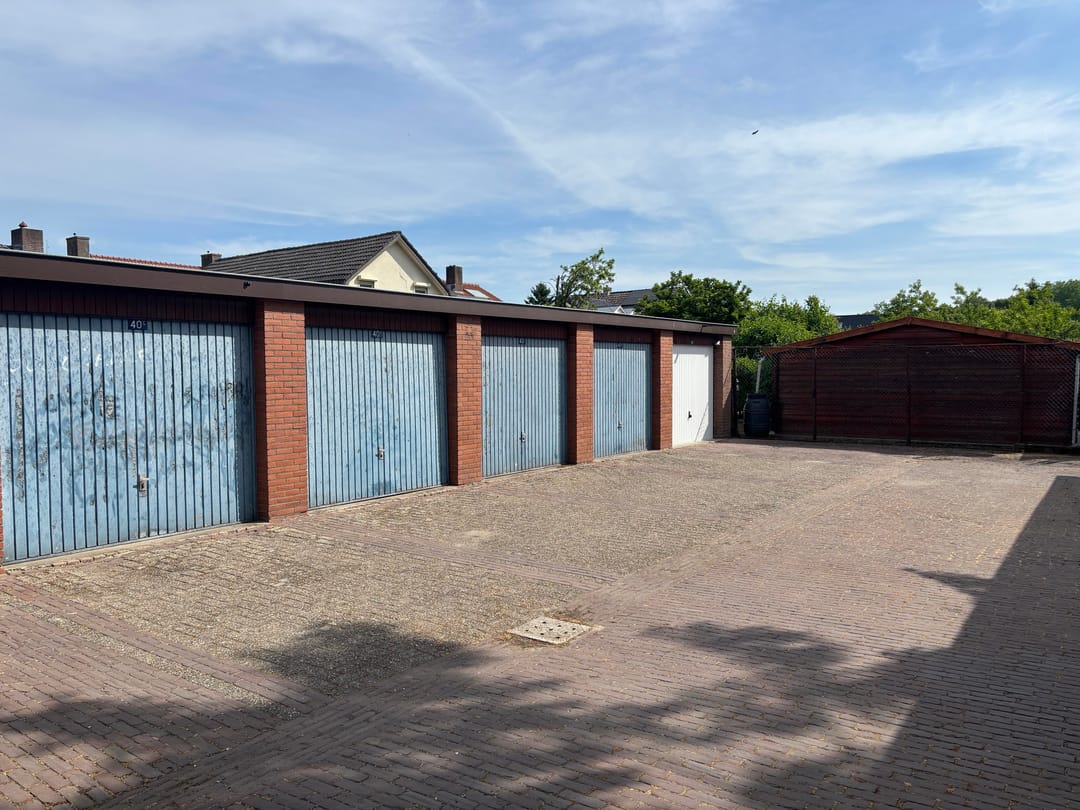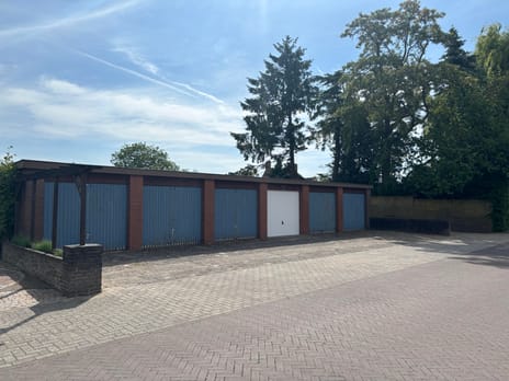 TE KOOP – 12 verhuurde garageboxen mét voorgelegen parkeerplaats op een goede locatie in Elst.