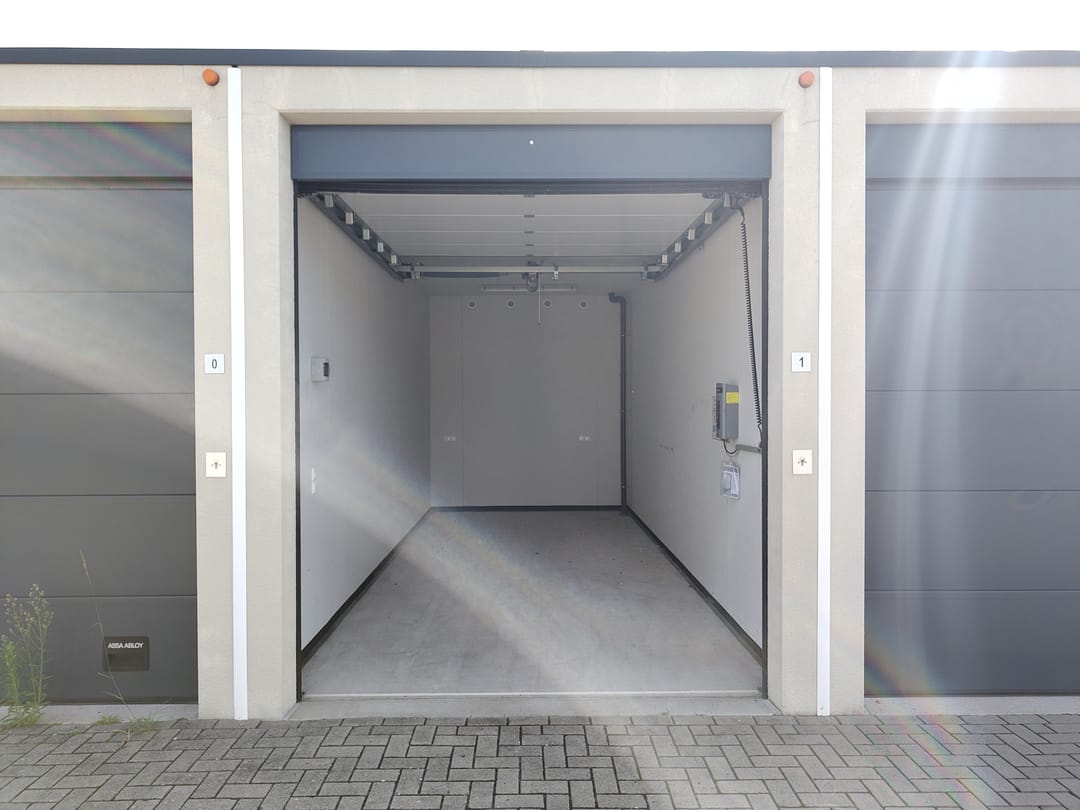 De (binnen)afmetingen van de unit zijn ongeveer 3.00m breed bij 7.00m diep. De unit is voorzien van een elektrisch aangedreven overheaddeur (van het merk Assa Abloy) en heeft een inrijhoogte van ongeveer 2.80m. De vrije hoogte is ongeveer 3.10m. De unit is verder voorzien van een lichtpunt en meerdere stroompunten.