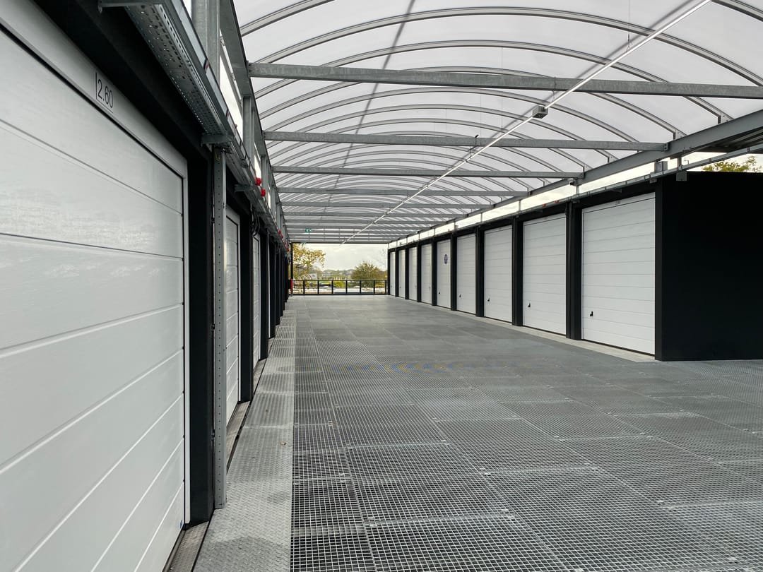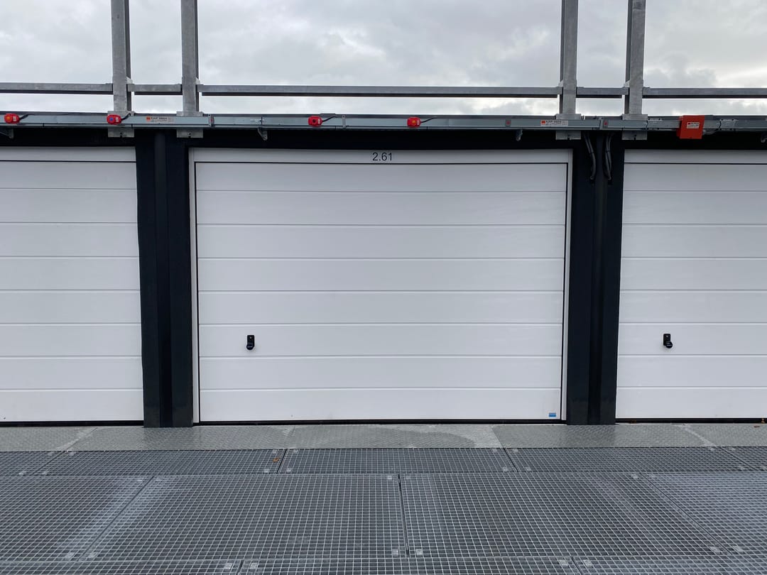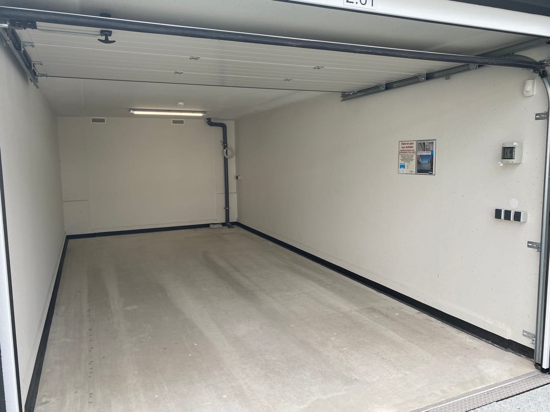 In het recent gebouwde garageboxenpark Multipark I te Heerhugowaard biedt VLIEG Bedrijfsmakelaars nu deze garagebox van het type 25 aan. Het betreft garagebox 2.61, gelegen op de tweede verdieping. De garagebox heeft buitenwerkse maten van 7 meter x 3,5 meter x 2,5 meter (L x B x H) en is voorzien van een elektra aansluiting (8A) met verlichting en twee dubbele wandcontactdozen. De handbediende sectionaaldeur heeft een inrijhoogte van 2,09 meter en een inrijbreedte van 3 meter.