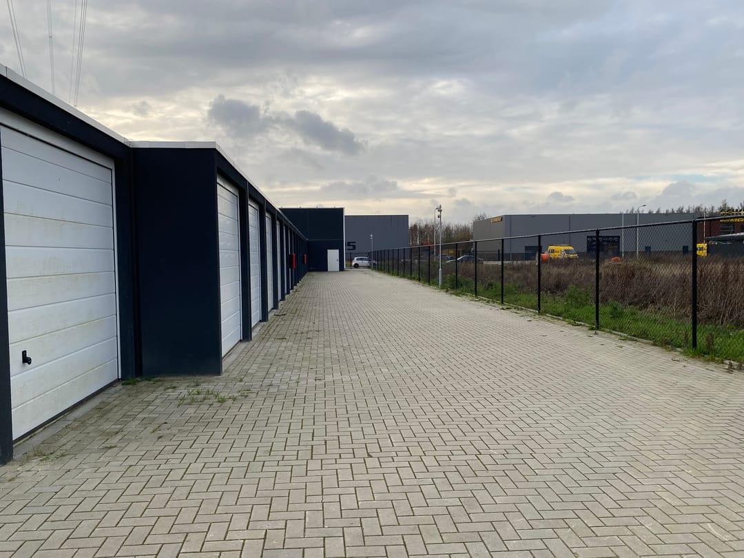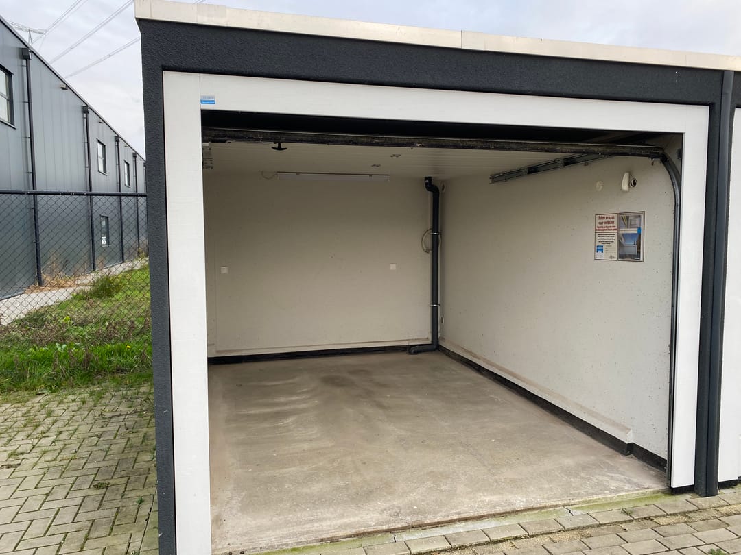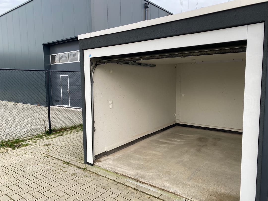 Op bedrijventerrein “Aalsvoort-West” gelegen recent gebouwde (2022) opslagunit / garagebox van 12 m² met overheaddeur.