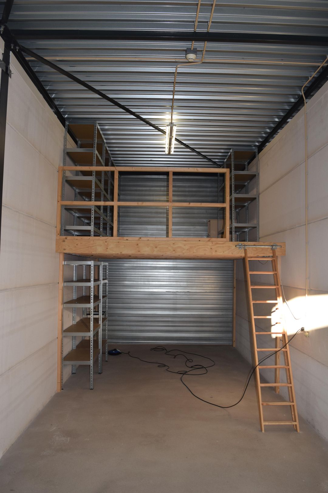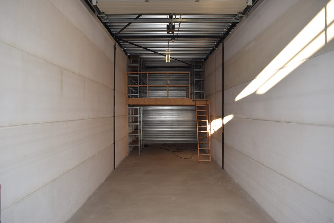 De ruimte is voorzien van een gewapende betonvloer met een draagvermogen van 500 kg/m², een elektrisch bedienbare overheaddeur (hoogte ca. 3,05 m), een vrije hoogte van circa 3,70 meter, entresolvloer en beschikt over een eigen elektra-aansluiting met tussenmeter, uitstortgootsteen en stellingkasten. Deze combinatie maakt de unit geschikt voor uiteenlopende opslag- of lichte werkdoeleinden.