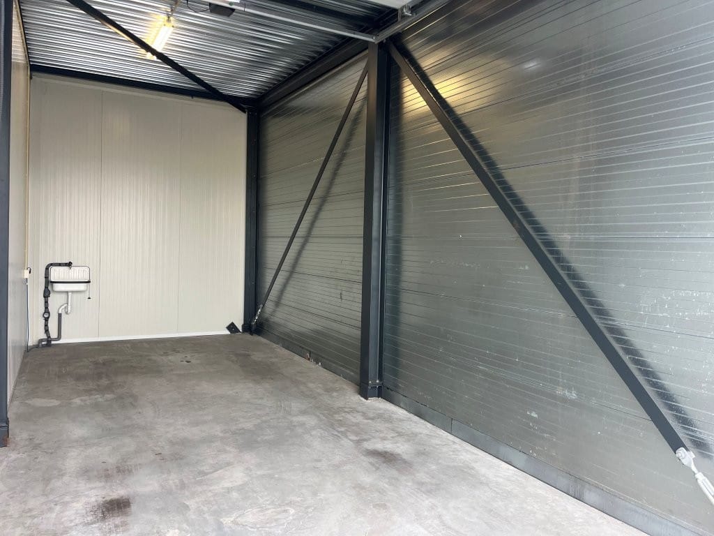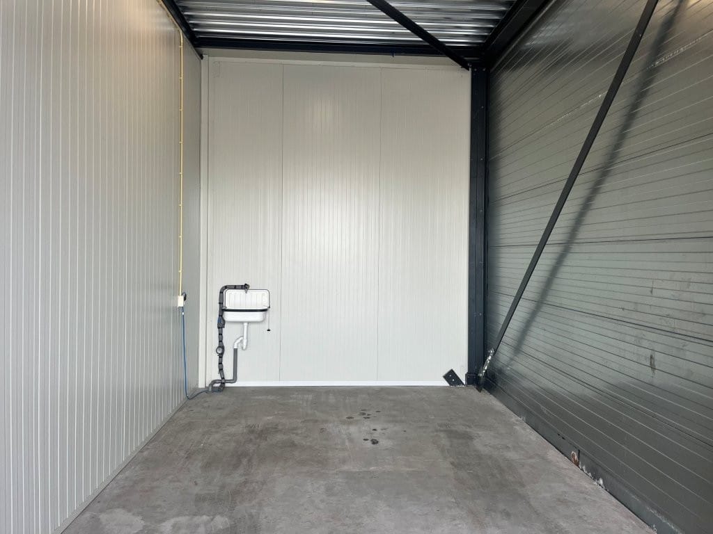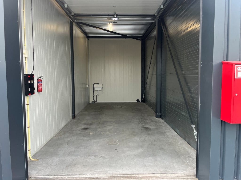 De box is uitgerust met elektra, verlichting, een elektrische overheaddeur en een wastafel. Het geheel bevindt zich op een afgesloten en goed beveiligd terrein, waar tevens een voertuiglift aanwezig is die binnenkort vernieuwd wordt. Daarnaast is er gezamenlijk sanitair beschikbaar. De ruimtes zijn 24/7 toegankelijk, waardoor de garagebox een veilige en veelzijdige oplossing biedt als opslagruimte, garage of hobbyruimte. Bij de entree zijn gezamenlijke toiletten, een wasbak en een uitstortgootsteen aanwezig.