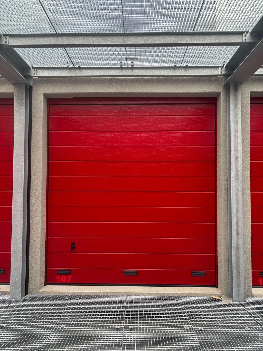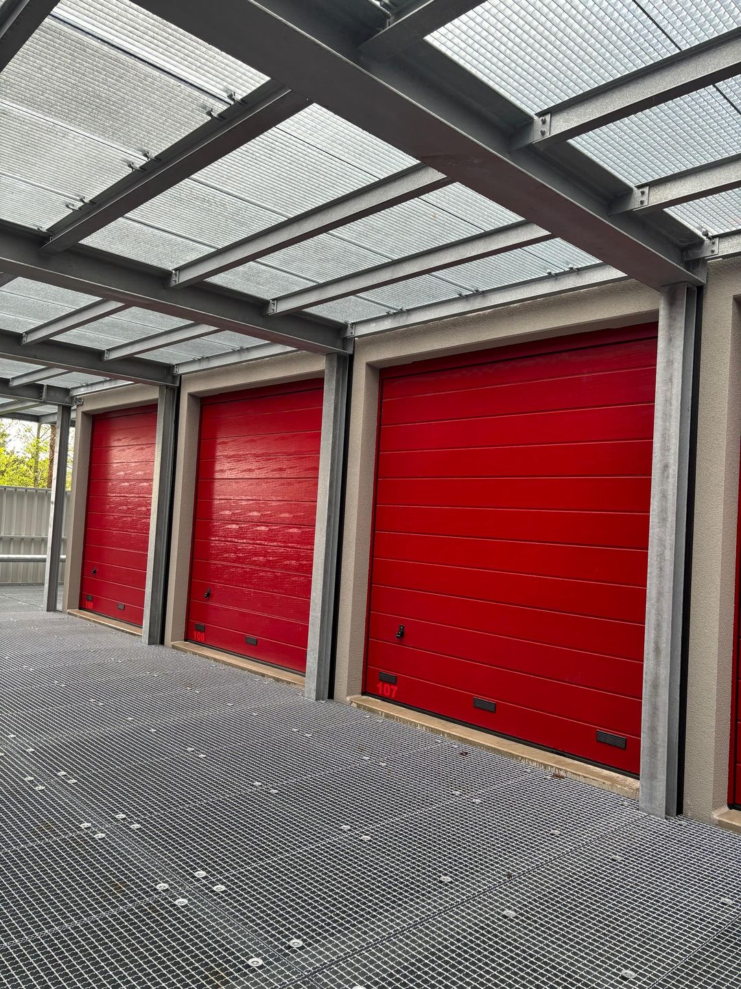 Unit 107 is gelegen op de 1e verdieping van het complex en is bereikbaar via zowel de hellingbaan als het trappenhuis. Het boxencomplex is volledig afgesloten met een stalen hekwerk en voorzien van elektrisch bedienbare schuifpoorten. Daarnaast beschikt het terrein over 24/7 toegang, buitenverlichting en camerabeveiliging.