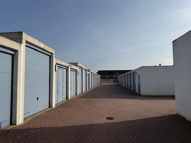 Op zoek naar een garagebox? In Zevenhuizen bieden we deze nieuwbouw (2019) garagebox aan welke 24/7 toegankelijk, uitstekend bereikbaar en, heel belangrijk, optimaal beveiligd is door terreinbeveiliging. Het leuke van dit project is de aanwezigheid van een gemeenschappelijke (sanitaire) voorziening, super handig! En je hebt bij deze boxen een adres en (de mogelijkheid tot) een postbus, een bedrijf kan zich inschrijven. Deze box is het grootste type en is bruto (buitenwerks) 8 meter diep en 3 meter breed en 3,50 meter hoog. De box beschikt over een sectionaaldeur, verlichting en twee stopcontacten. Verder zijn deze boxen van hoogwaardige kwaliteit, representatief, vandalisme bestendig en onderhoudsarm.