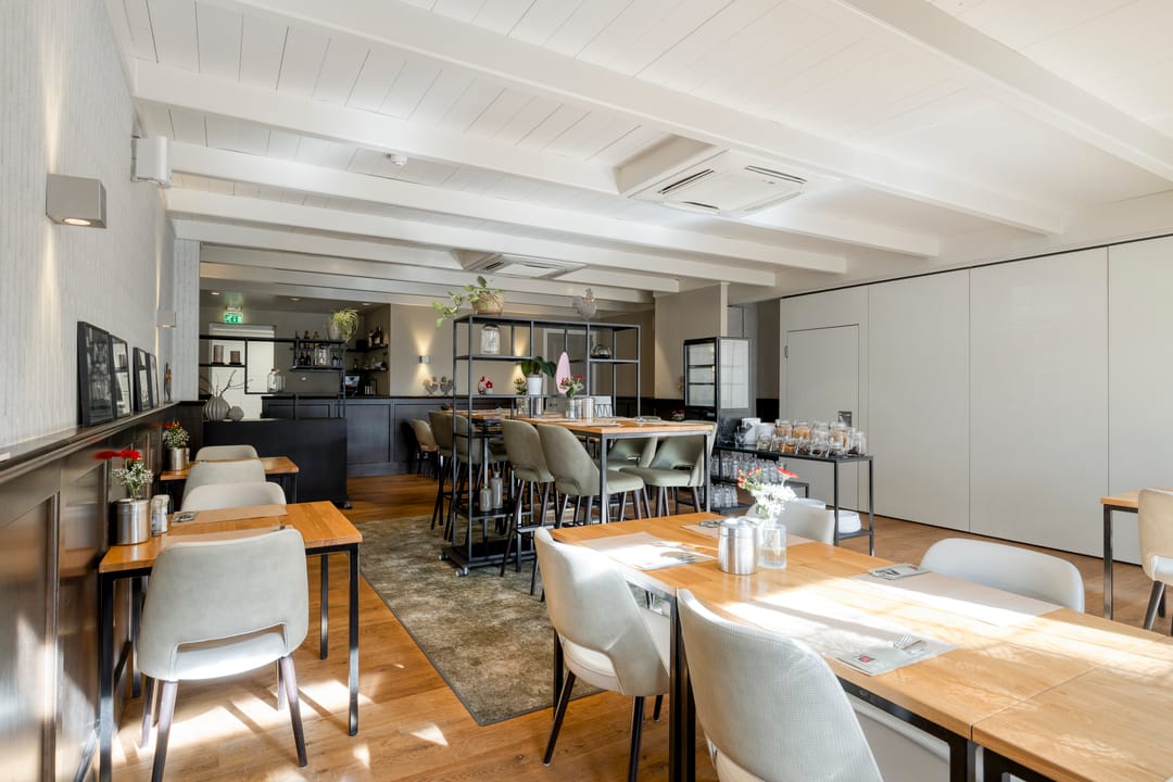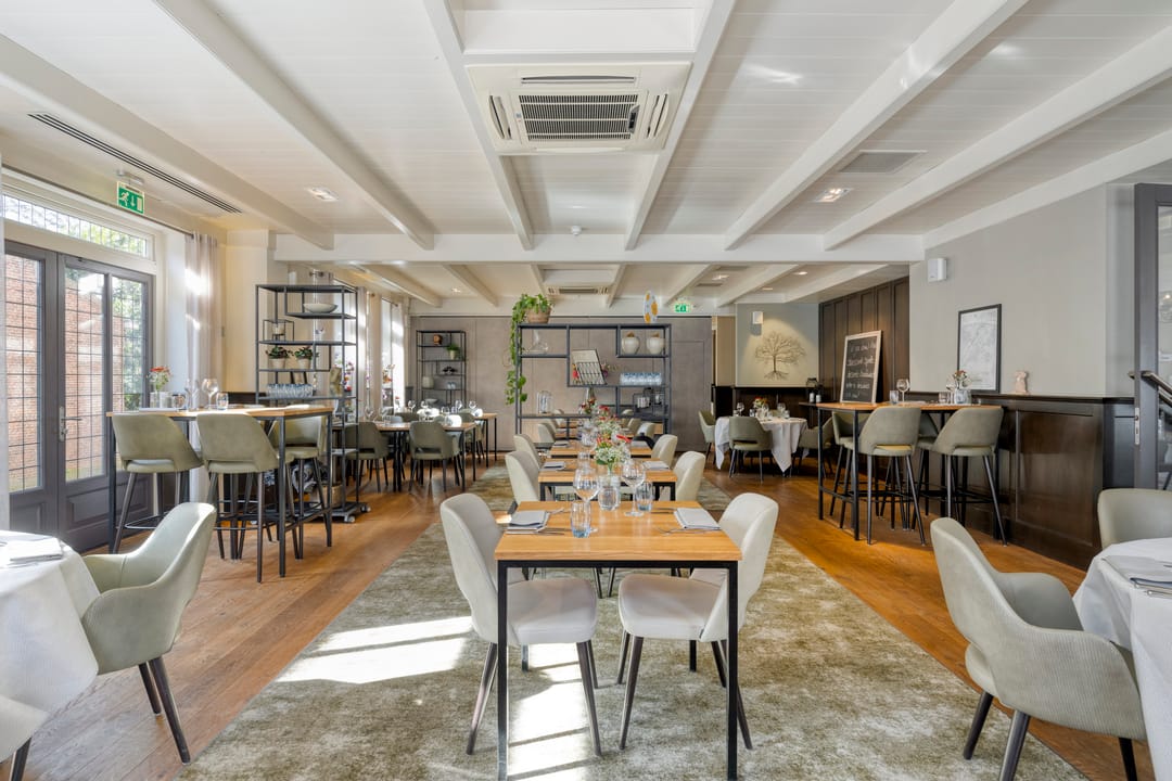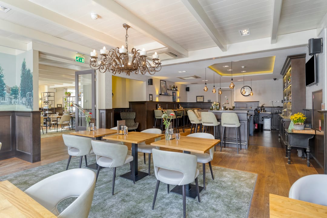 Restaurant met bar van 160 m2 dat middels een scheidingswand kan worden opgedeeld in 2 aparte delen van 90 en 70 m2.