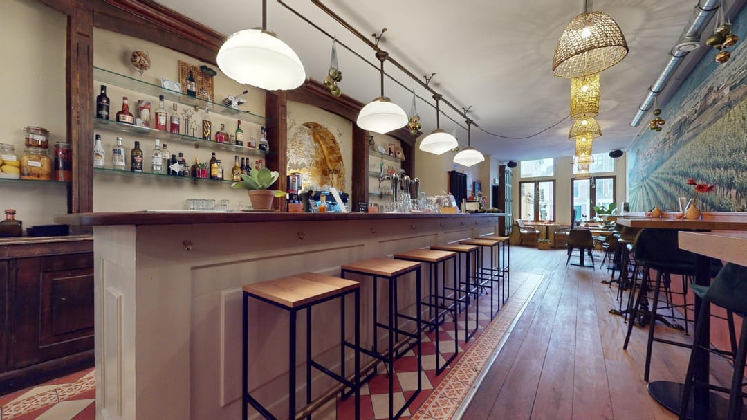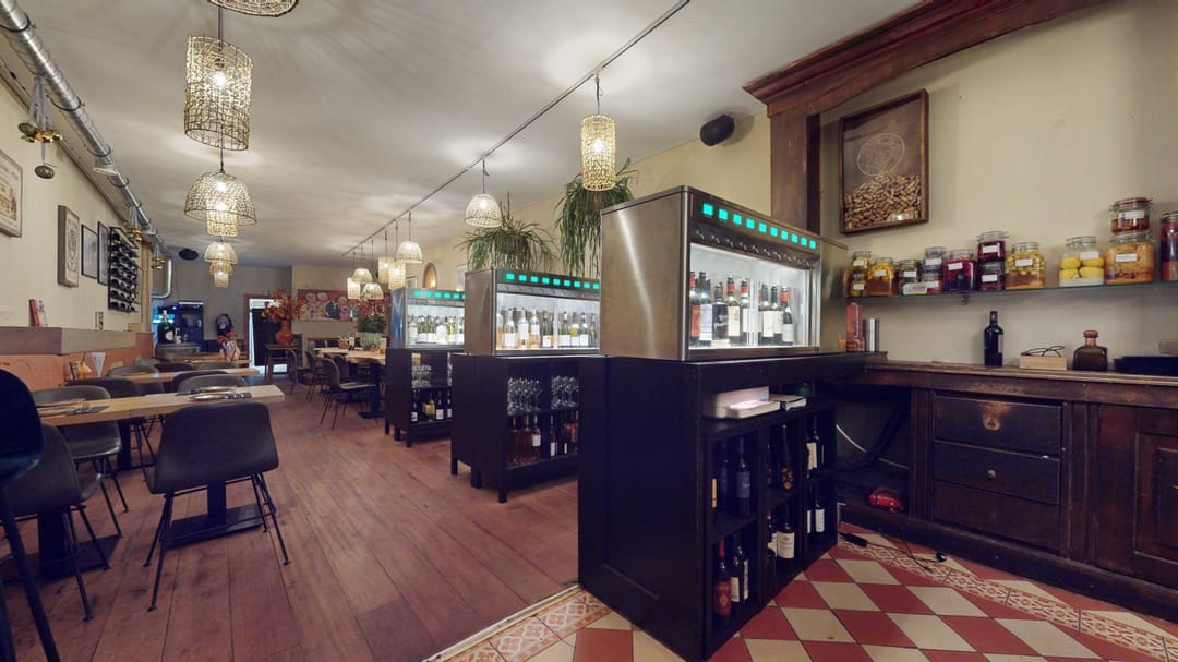 De huidige huurder exploiteert hier met succes een wijnbar & restaurant, waarbij een wijnproeverij gecombineerd kan worden met kleine gerechtjes voor een complete smaakervaring. De onderneming beschikt ook over een terras pal tegenover de zaak met ca. 40 zitplaatsen.