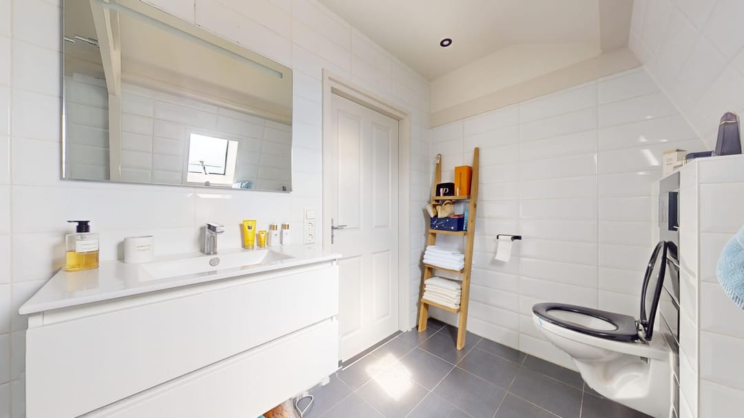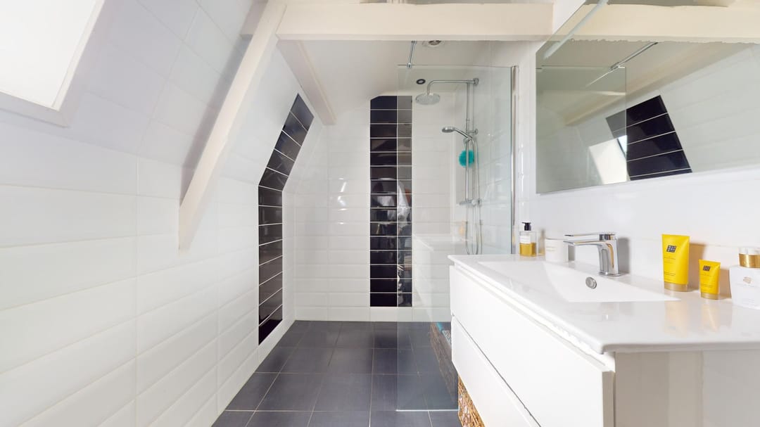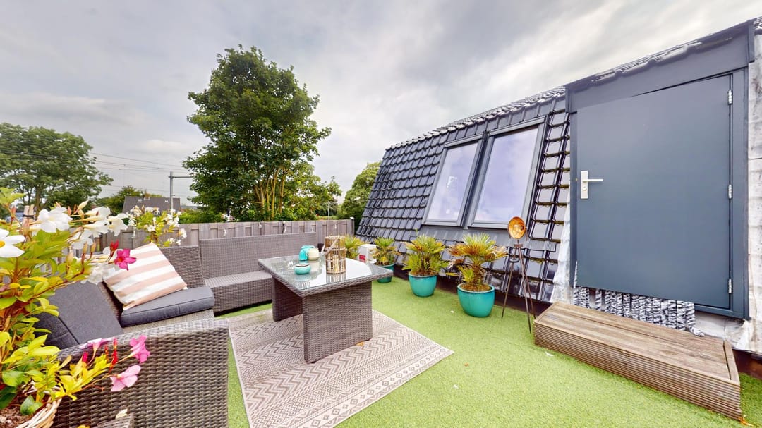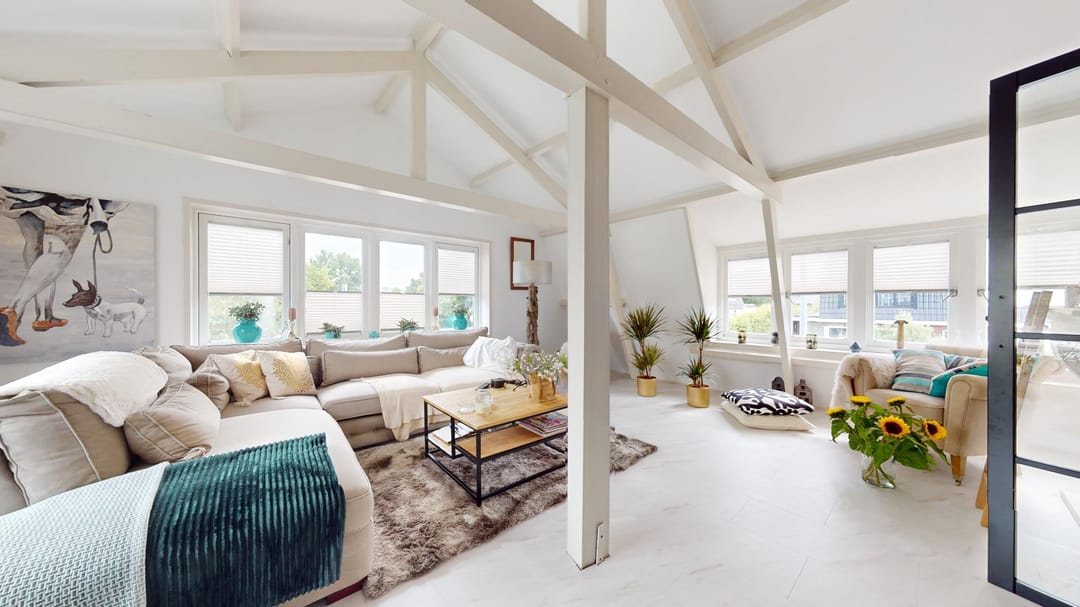 De bovenwoning wordt momenteel verhuurd voor € 900,- vrij van btw per maand. De woning is ca. 90 m² en heeft een eigen entree aan de linkerzijde van het pand, die direct toegang biedt tot de keuken. Verder beschikt de woning over een woonkamer, een slaapkamer en een badkamer. Daarnaast is er een dakterras van ca. 29 m².