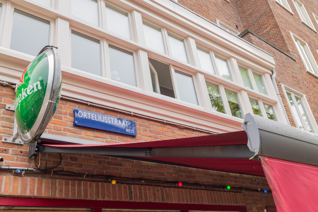Het café wat al meer dan 20 jaar(!) in de familie zit is gelegen op de hoek van de Jan Evertsenstraat en de Orteliusstraat en beslaat een oppervlakte van circa 70 vierkante meter. Bij binnenkomst ervaar je direct de authentieke sfeer van een klassiek Amsterdams bruin café. Het café biedt plaats aan ongeveer 30 gasten. De binnenruimte beschikt over twee toiletten en een professioneel ingerichte keuken. Daarnaast heeft het pand een ruim terras dat de hele dag door zon heeft.