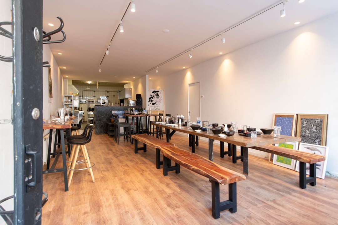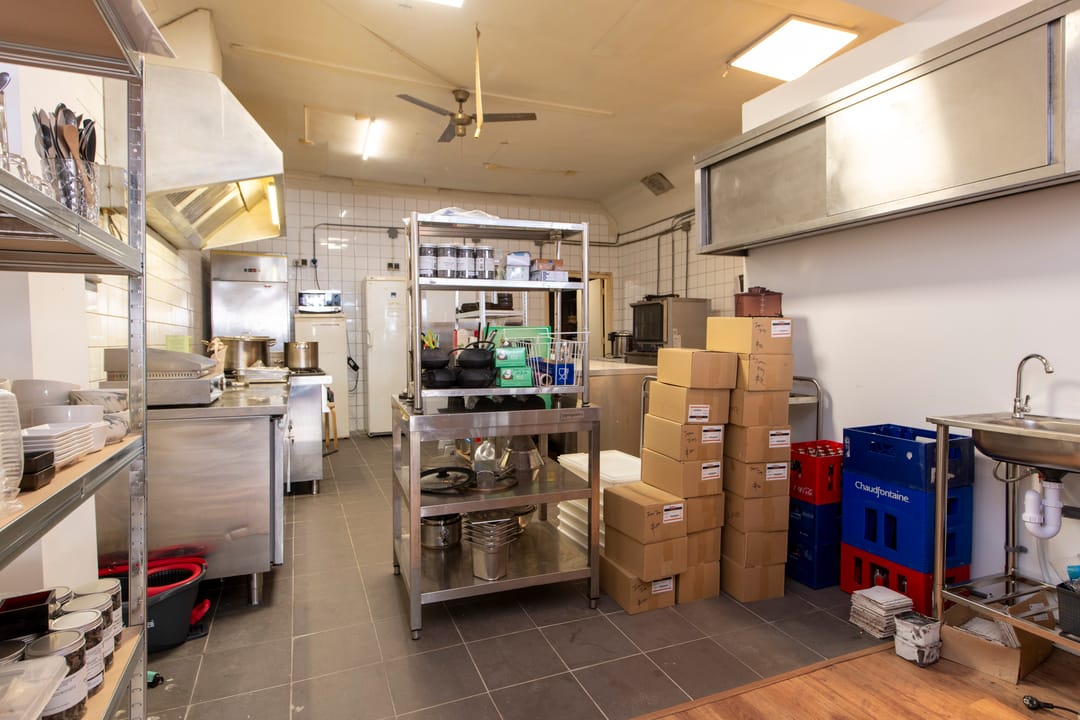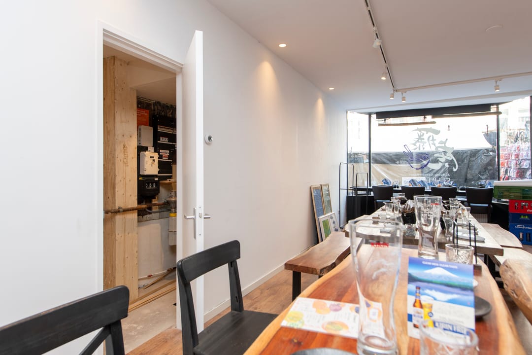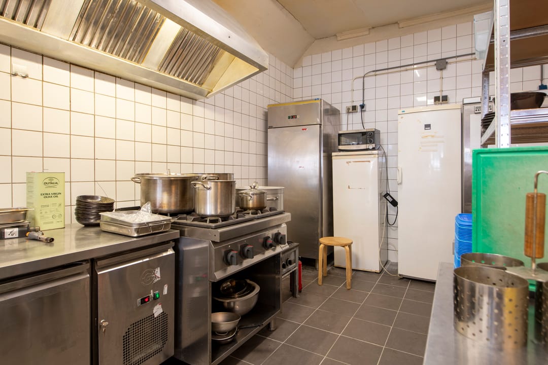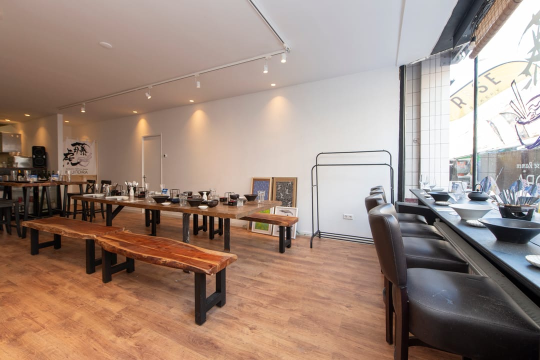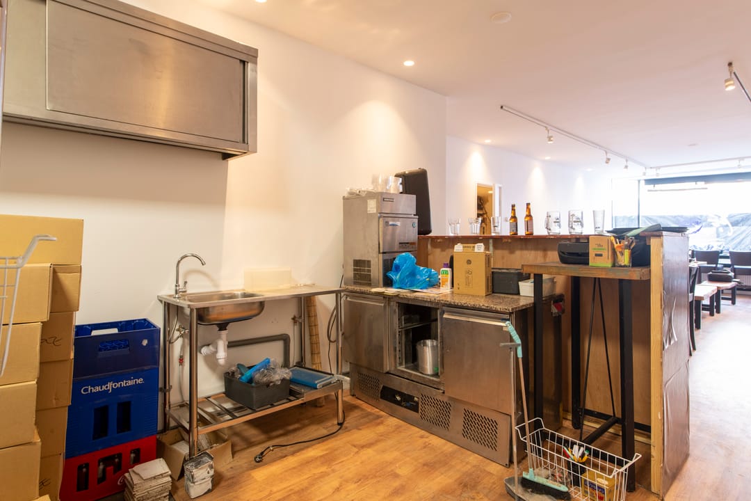De horecaruimte beschikt over een overzichtelijke en functionele indeling. Aan de voorzijde bevindt zich een sfeervol zitgedeelte met ruimte voor circa 20 gasten, dankzij een opstelling met meerdere lange tafels. De open keuken aan de achterzijde voorzien van een 4-pits fornuis, oven en diverse koel- en werkbanken draagt bij aan een transparante en uitnodigende sfeer, waarbij gast en keuken in direct contact staan.