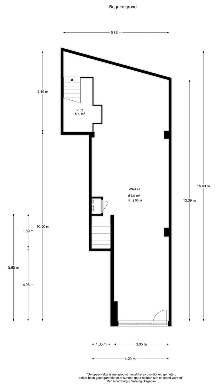 Begane grond: 54 m2 VVO (plafondhoogte: ca. 3 meter)