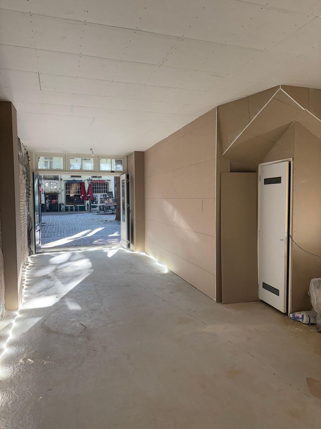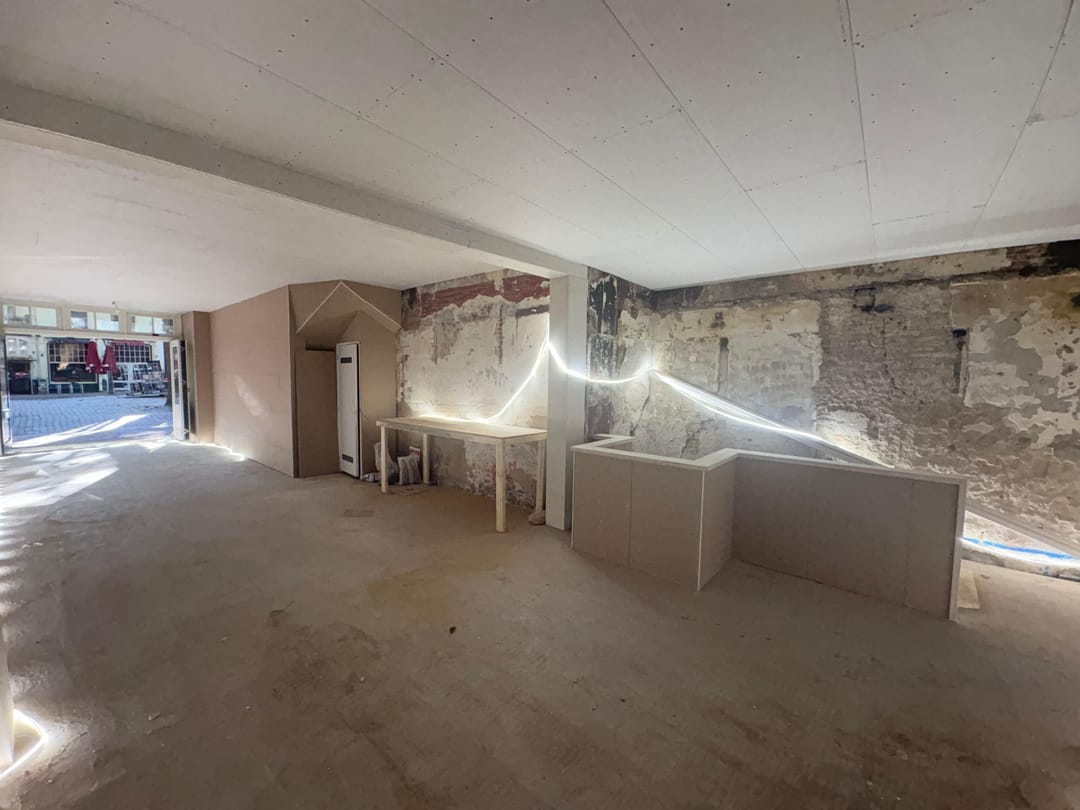 The property has recently undergone technical renovations and will be delivered in shell condition, ready for interior design according to the tenant’s wishes. The front façade features a folding glass system, allowing the entire frontage to open up—perfect for serving guests on the large terrace. Additional investments have been made in qualitative (sound) insulation and new electrical installations.