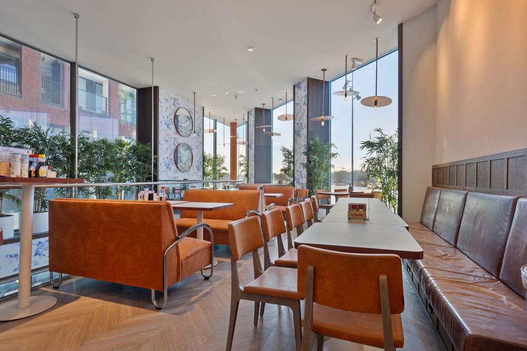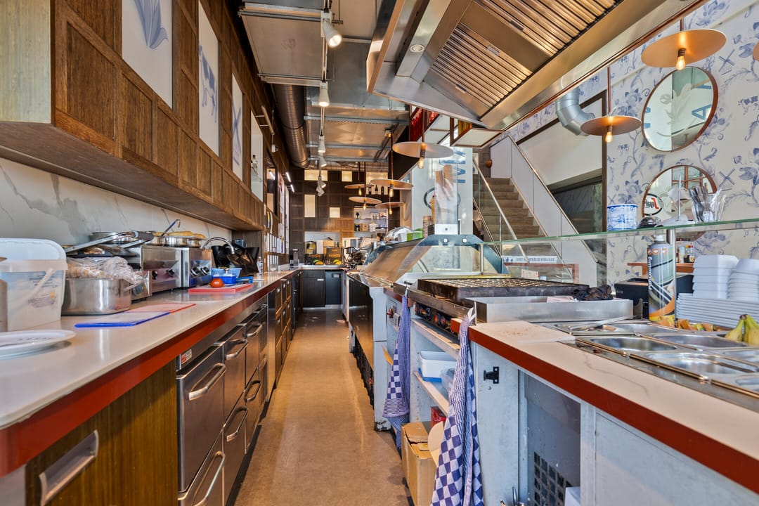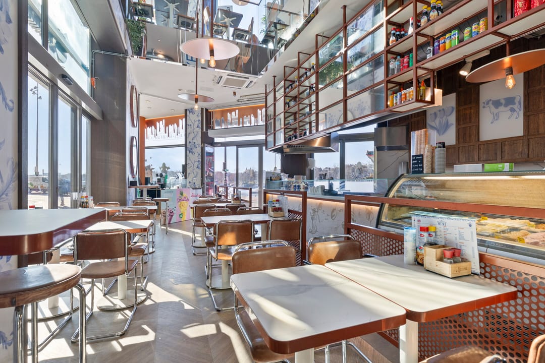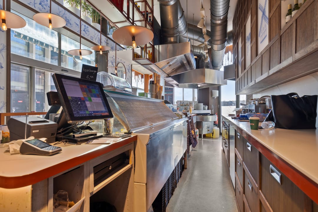Het pand heeft een oppervlakte van ca. 222m2 en biedt een prachtig uitzicht op het IJ. De binnenruimte is zeer overzichtelijk ingedeeld met een open keuken aan de linkerkant bij binnenkomst. Aan de ramen zowel beneden als boven kan men plaatsnemen en genieten van het fantastische uitzicht. De zaak is voorzien van professionele apparatuur en een afzuiginstallatie.
