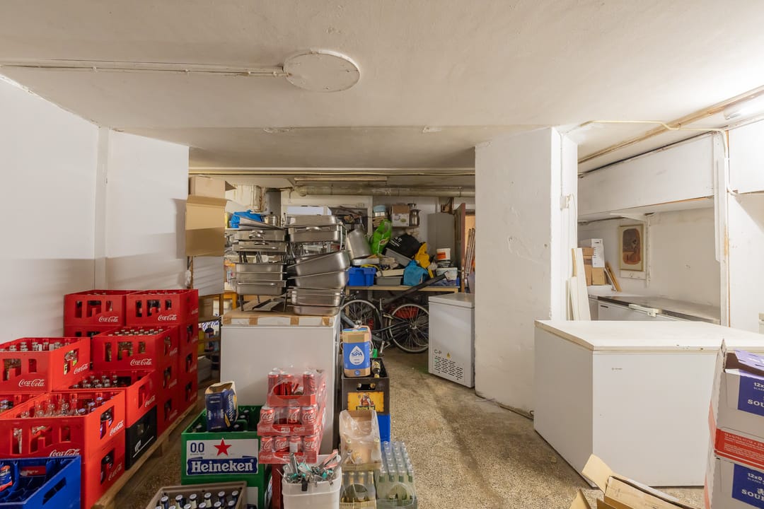 De bedrijfsruimte heeft een totaaloppervlakte van ca. 381 m², verdeeld over de begane grond en het souterrain (bron: BAG-viewer). Op de begane grond bevinden zich de entree, het zitgedeelte, de bar en de open keuken. Het souterrain is ingericht met opslagruimte en personeelsfaciliteiten. Deze indeling maakt de ruimte geschikt voor zowel restaurantgebruik als take-away en bezorgactiviteiten.