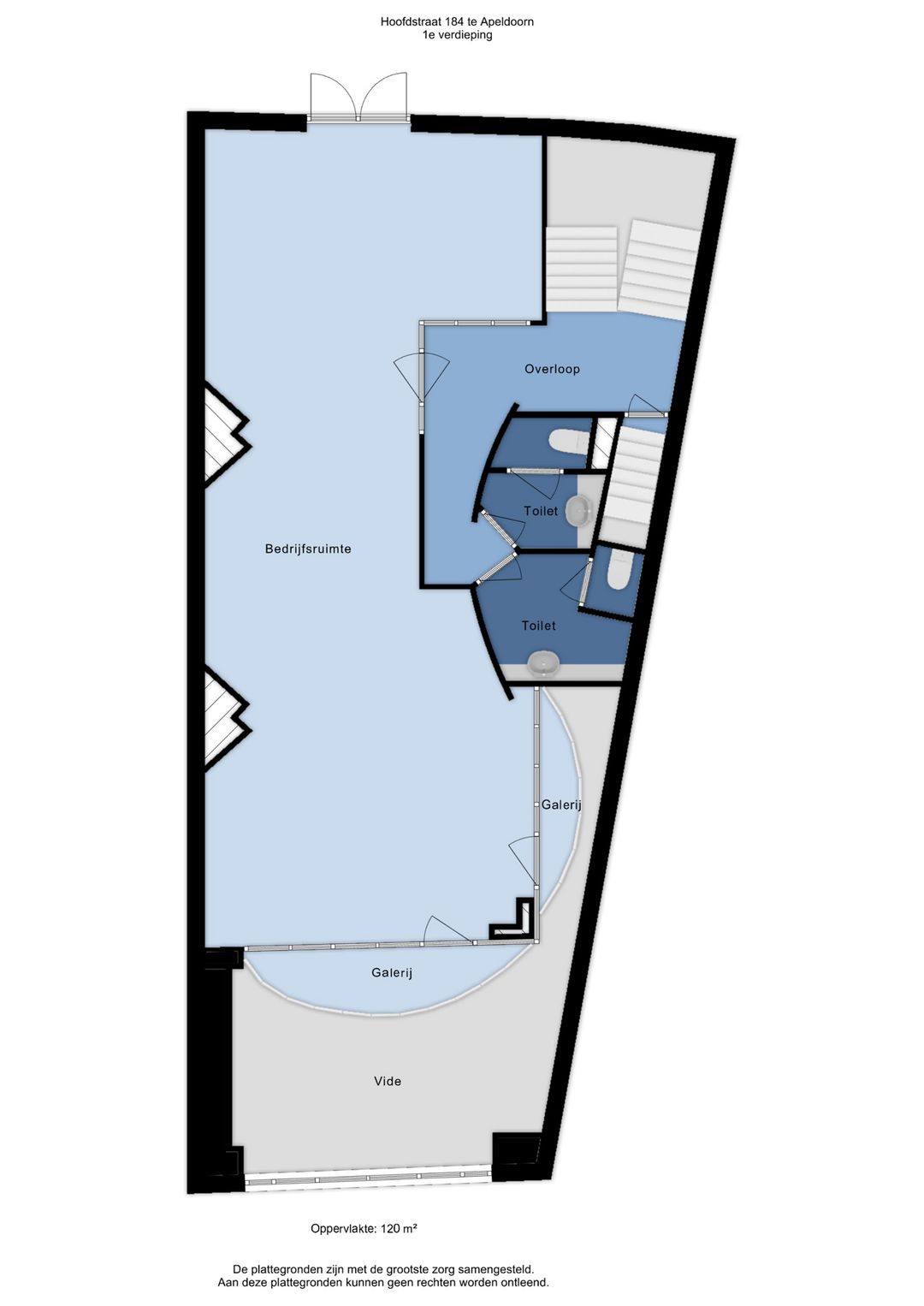 Aan deze objectinformatie kunnen geen rechten worden ontleend en deze informatie kan niet als aanbieding of offerte worden beschouwd maar geldt als uitnodiging om in onderhandeling te treden. Alle informatie is geheel vrijblijvend en uitsluitend voor geadresseerde bestemd. Alle gegevens zijn met zorg samengesteld en uit ons inziens betrouwbare bron afkomstig. Ten aanzien van de juistheid ervan kunnen wij echter geen aansprakelijkheid aanvaarden. Door ons wordt geen aansprakelijkheid aanvaard behoudens voor zover de door ons verplicht afgesloten beroepsaansprakelijkheidsverzekering in voorkomend geval aanspraak op een uitkering geeft.