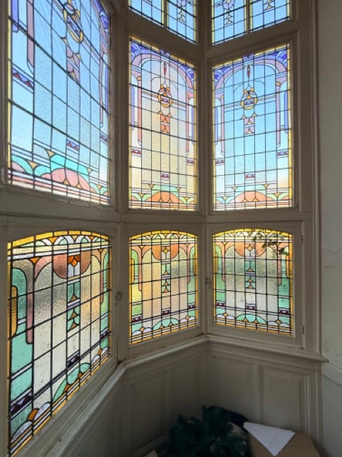 Het horeca/kantoor object beschikt over tal van authentieke details, waaronder erkers en glas in lood ramen.