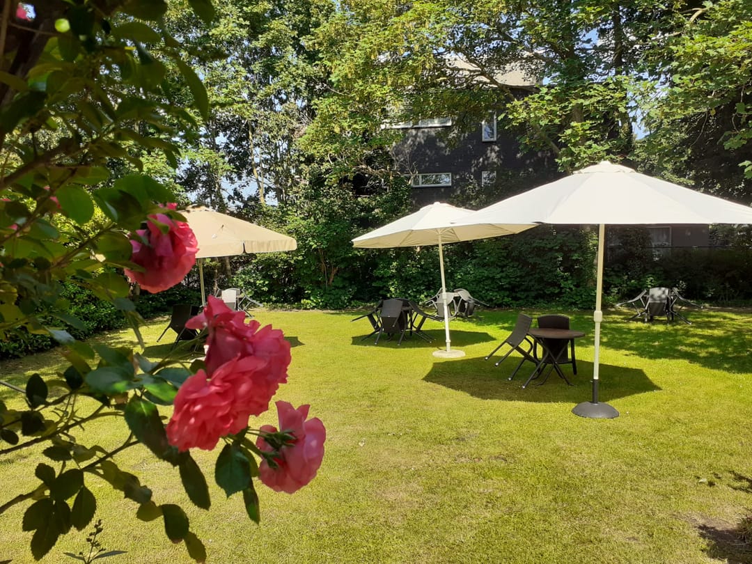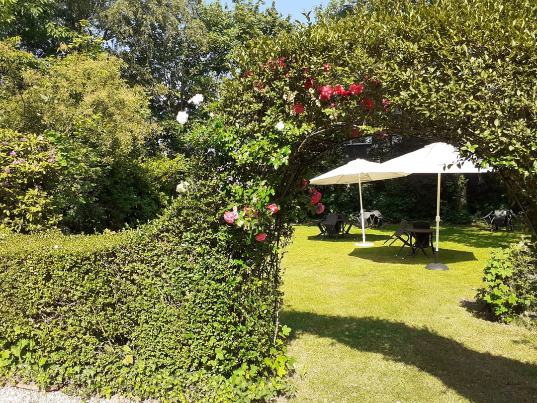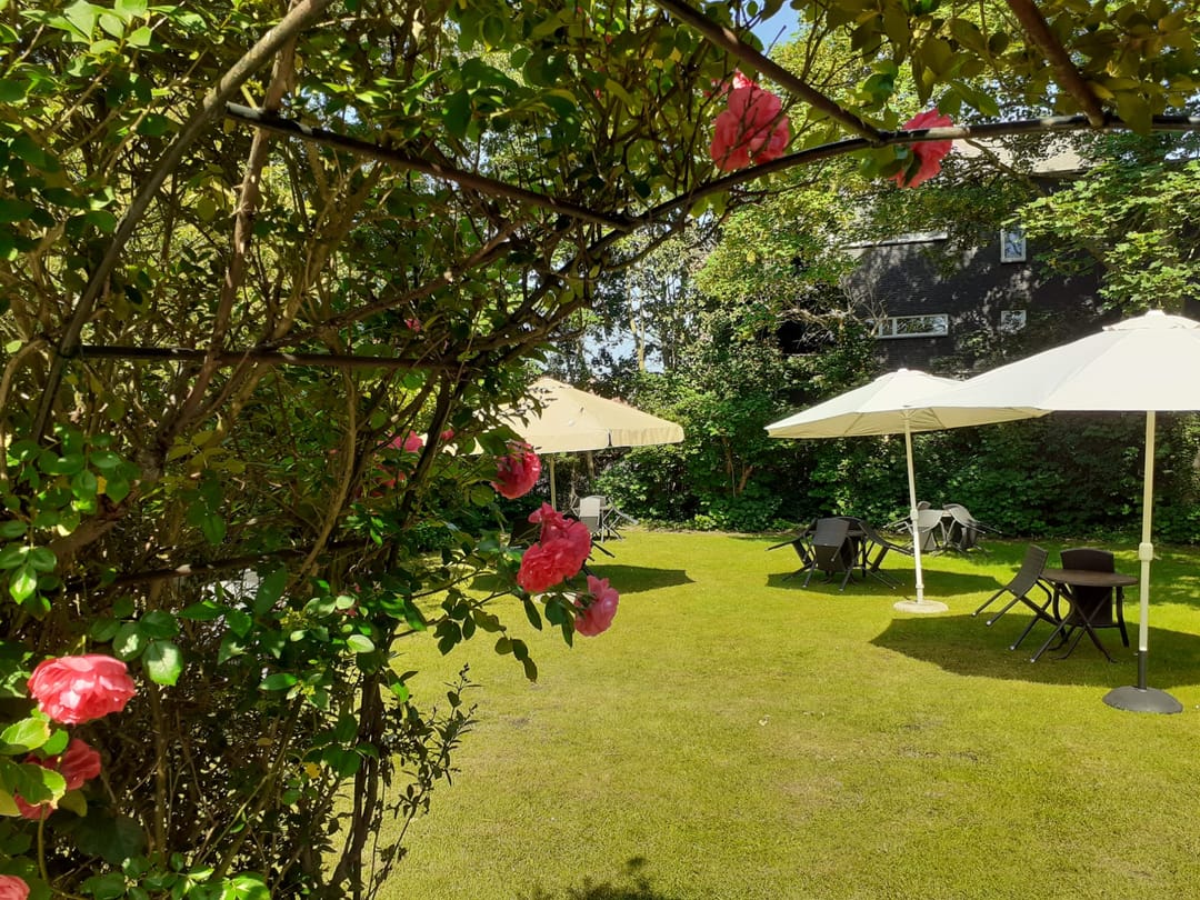 De achtertuin (ruim 500 m²) kan ook als terras (biergarten) worden ingericht.
