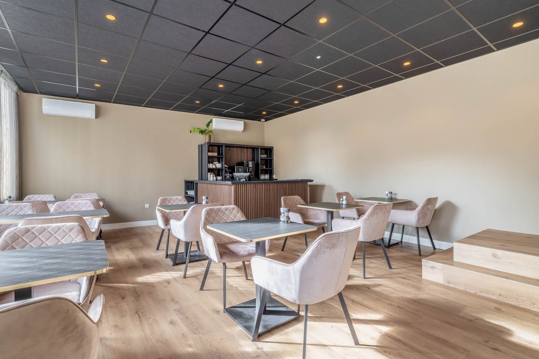 De ontbijtzaal, voorzien van een stijlvolle pvc-vloer, airconditioning en een bar, vormt een sfeervolle ruimte waar gasten de dag ontspannen kunnen beginnen. Vanuit hier is het zonnige terras direct bereikbaar. Daarnaast is er een keuken met moderne inbouwapparatuur voor het bereiden van ontbijt en een wasruimte met aansluitingen voor witgoed.
