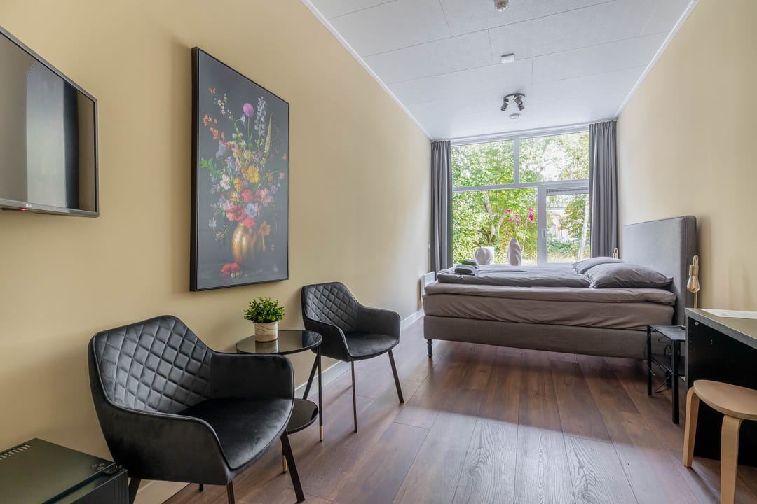 Drie sfeervolle tweepersoonskamers met stijlvol interieur, voorzien van een comfortabel tweepersoonsbed, nachtkastjes, zitgedeelte met tafel en bureau. Uitgerust met smart-tv, koelkast en een hoogwaardige laminaatvloer. Eén van de kamers is voorzien van airconditioning.