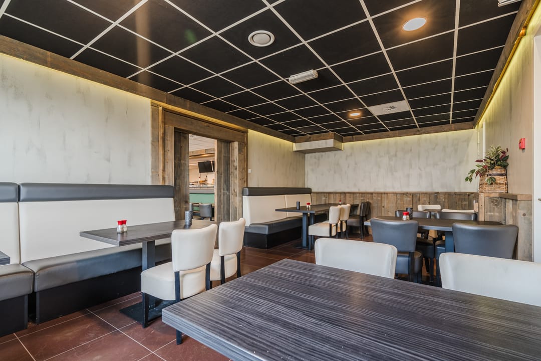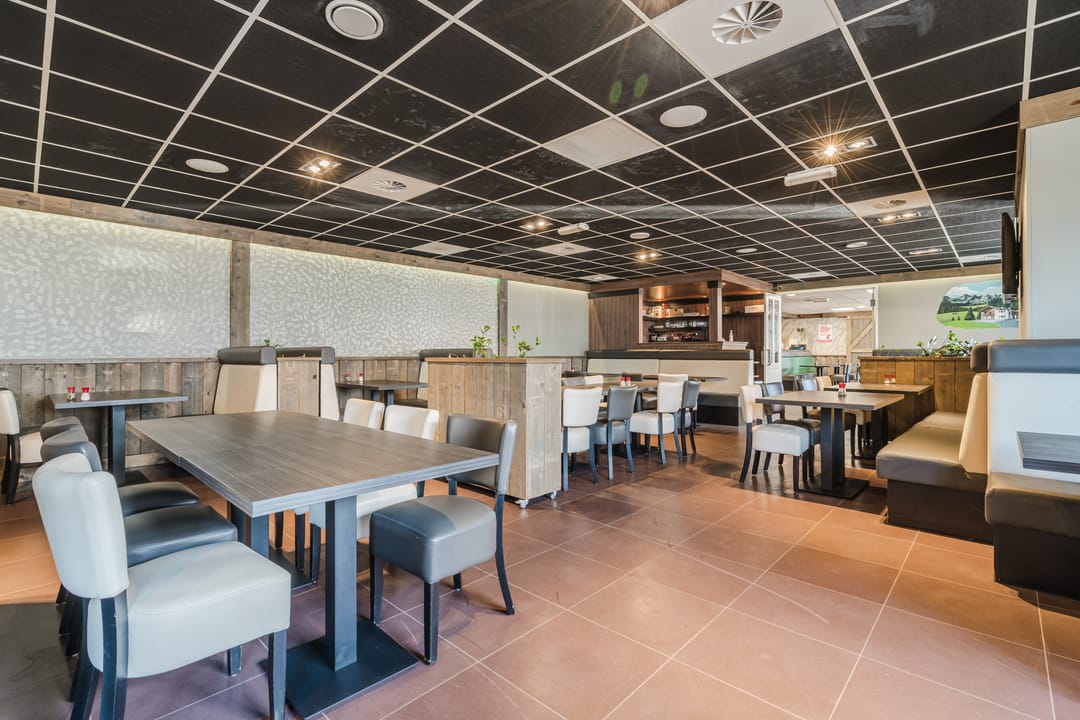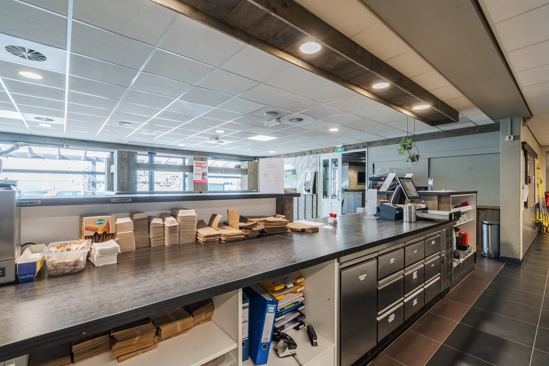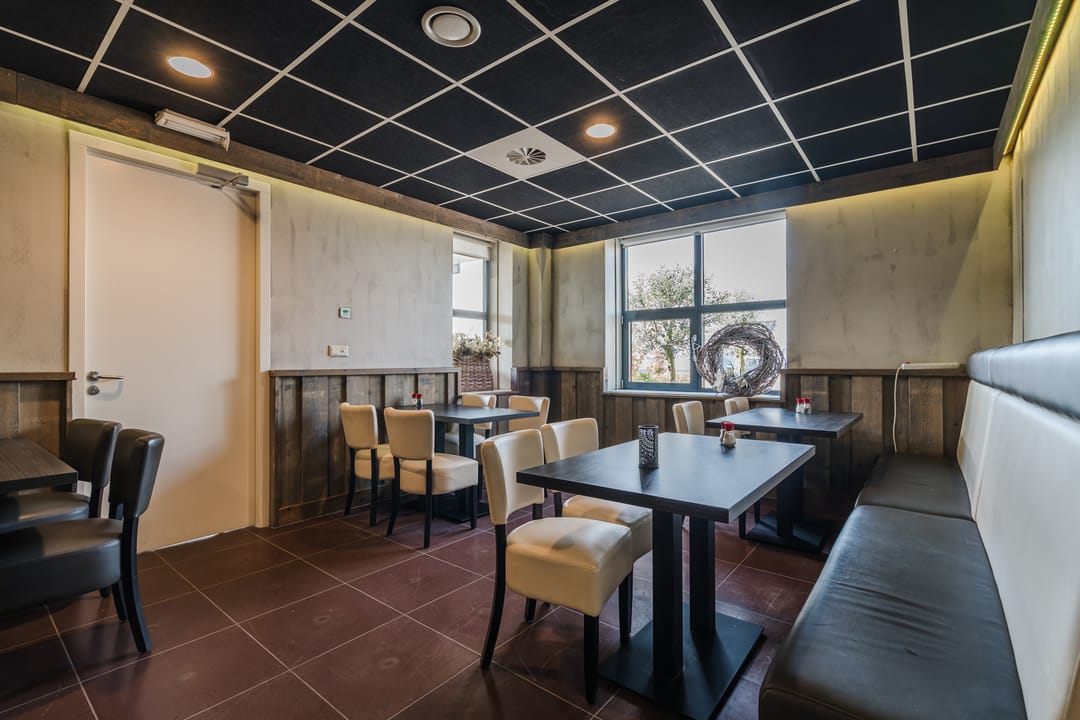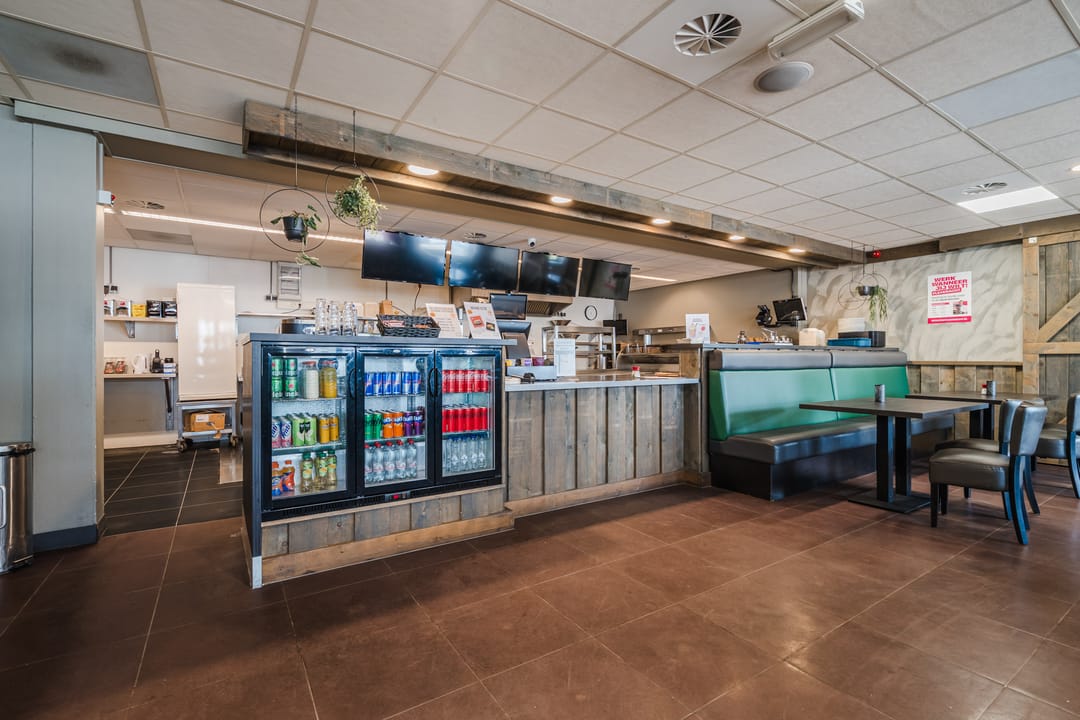 - Volledig ingerichte cafetaria en lunchroom met voorgelegen terras.