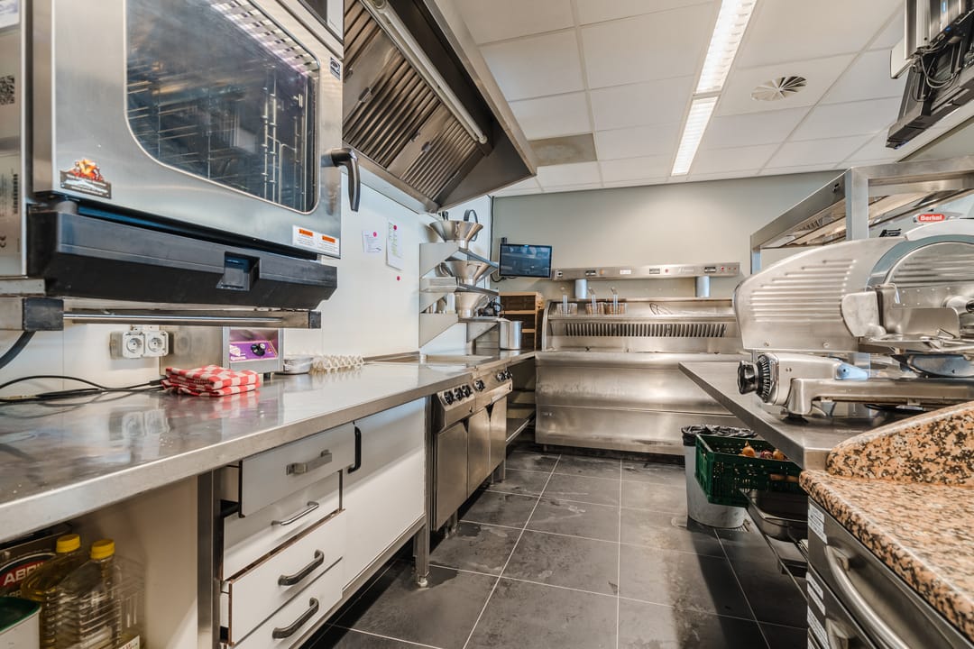 - Een ruime, professioneel ingerichte mise-en-place keuken, volledig volgens de HACCP-normen en efficiënt ingedeeld.