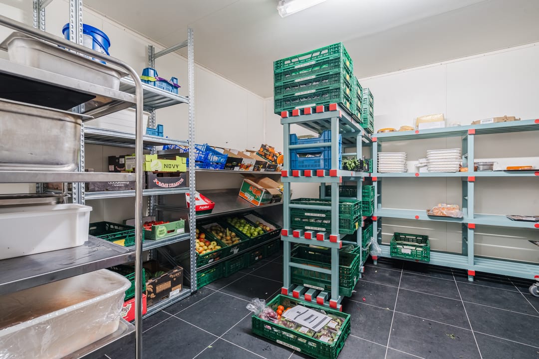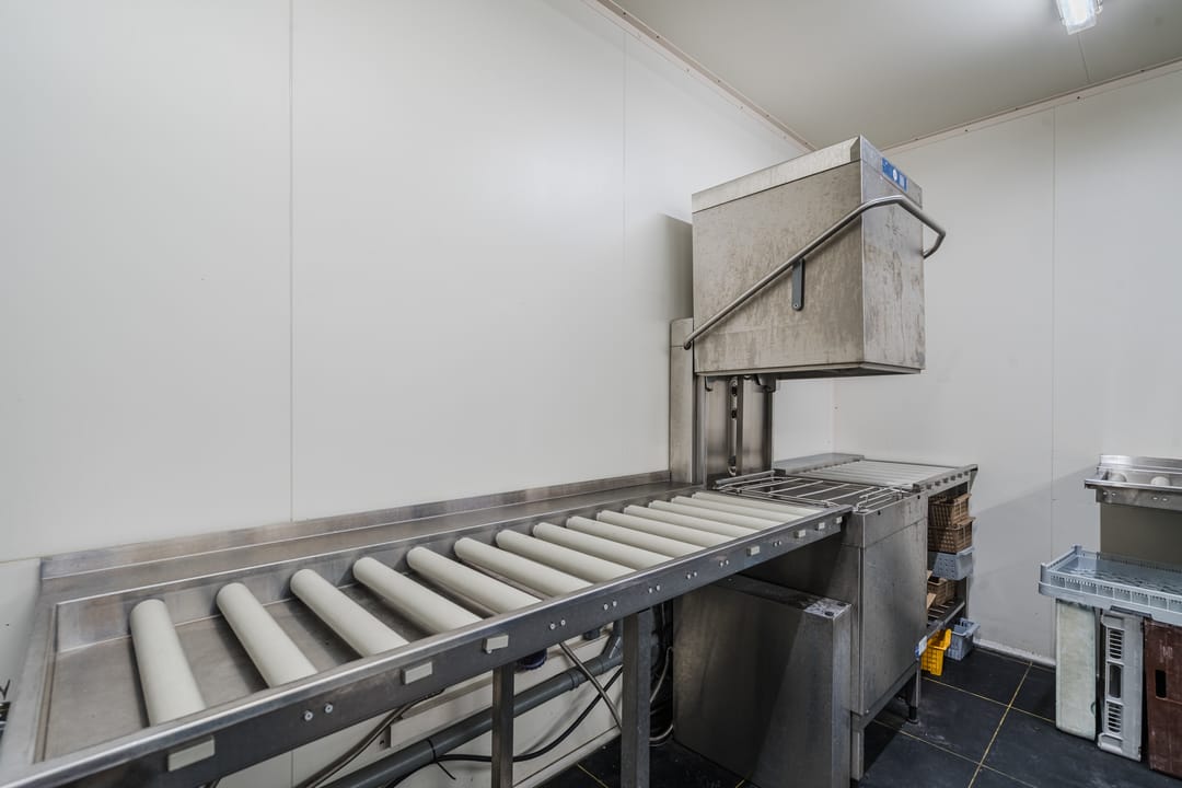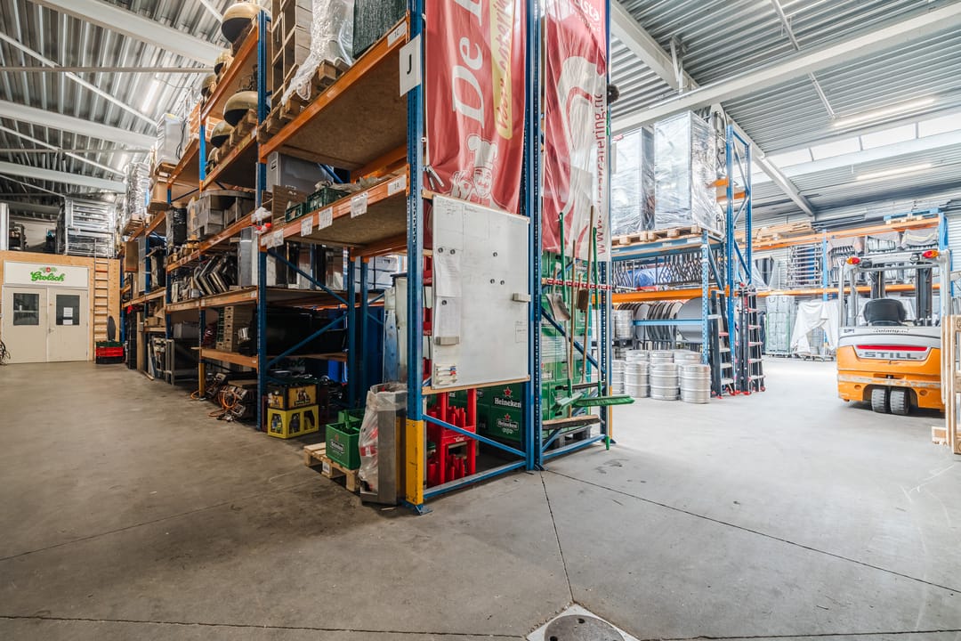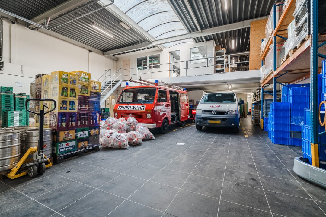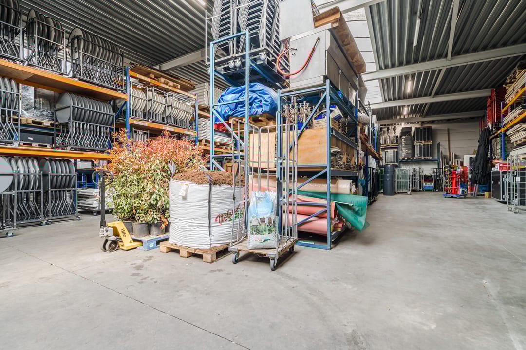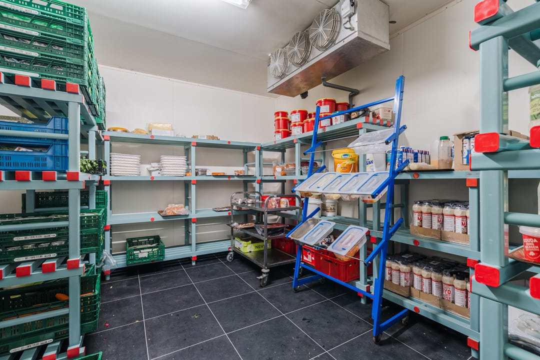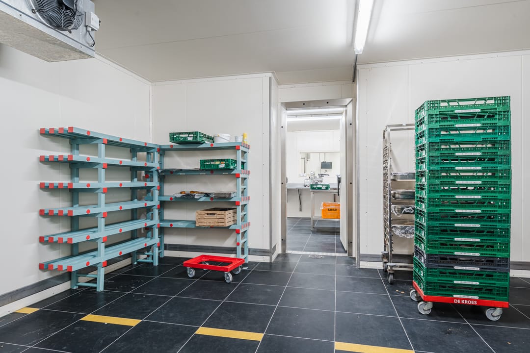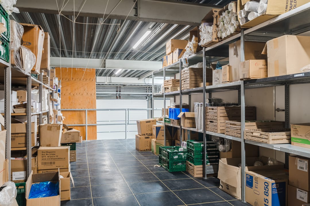 - Een royale loods voor opslag van materialen, benodigd voor grootschalige cateringopdrachten of voor de verhuur.