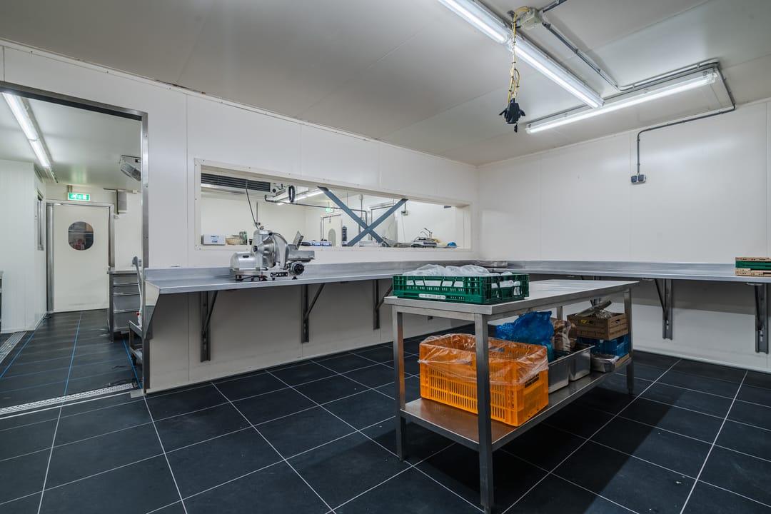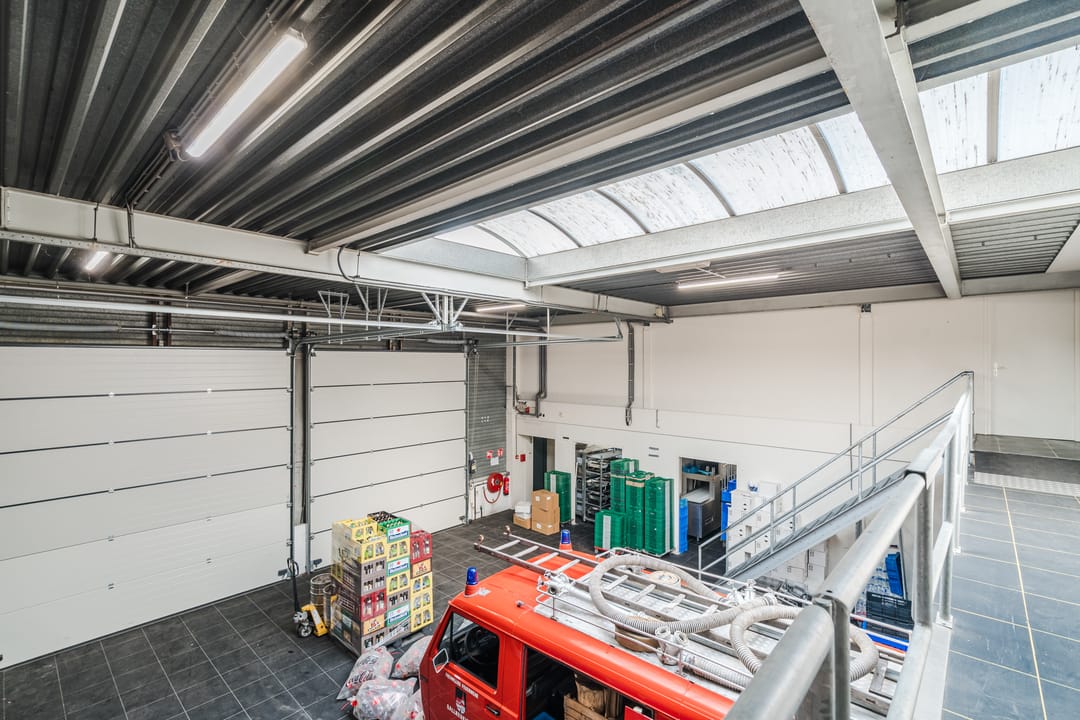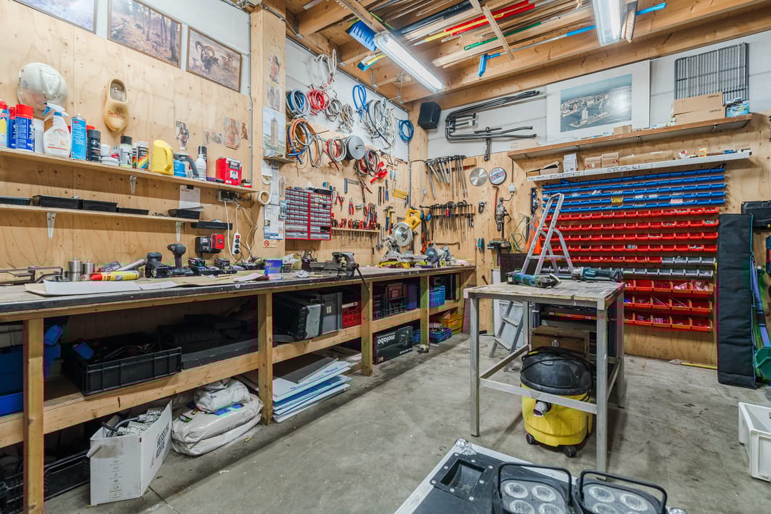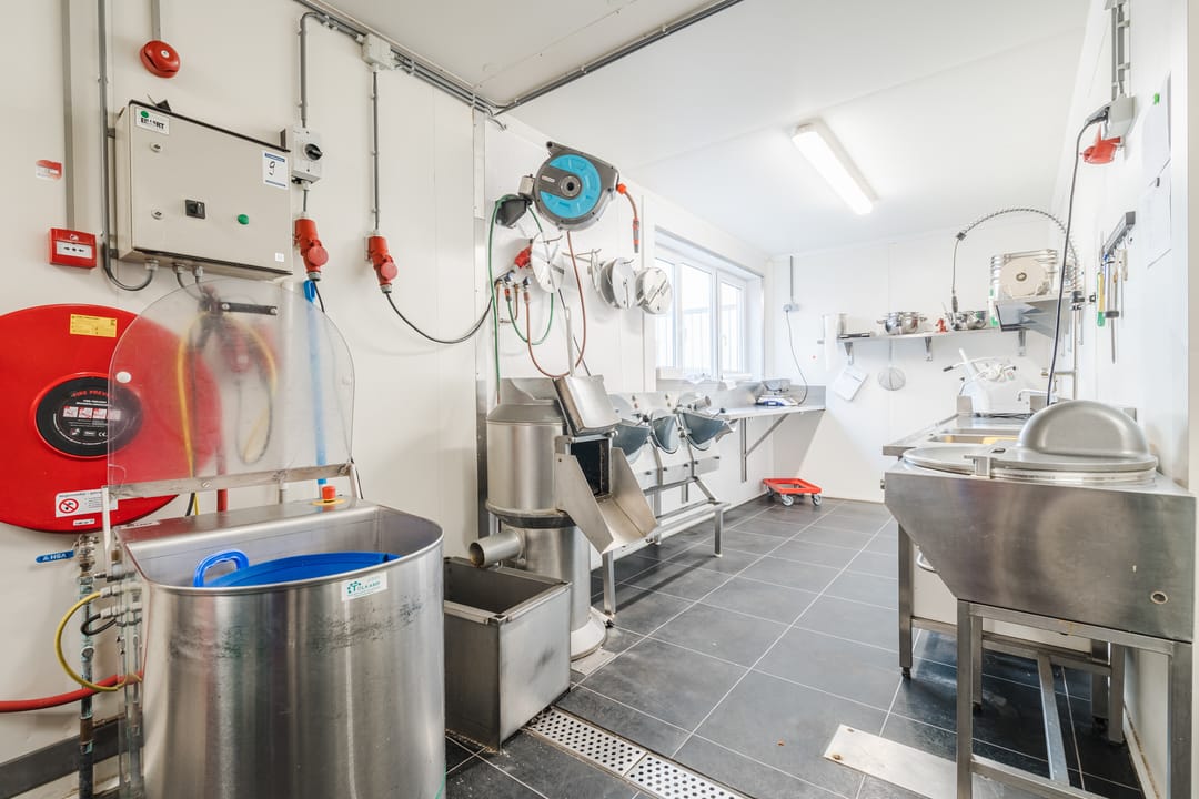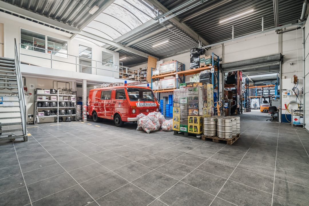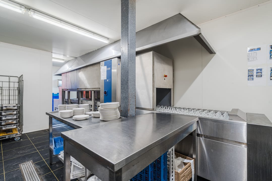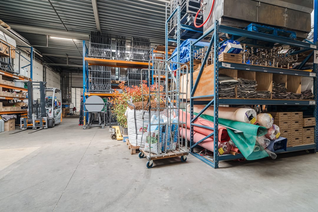- Een royale loods voor opslag van materialen, benodigd voor grootschalige cateringopdrachten of voor de verhuur.