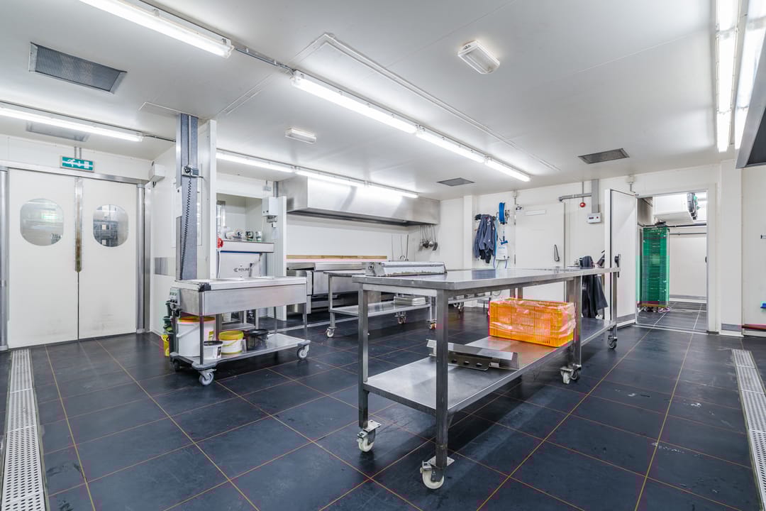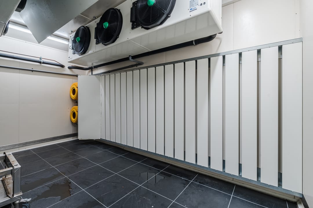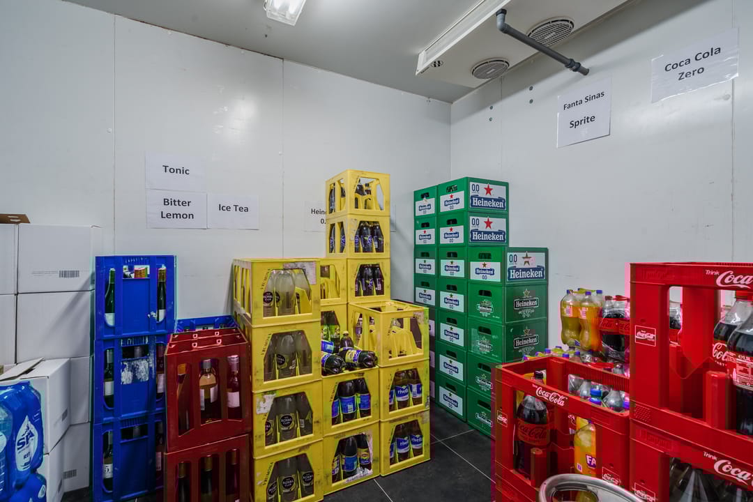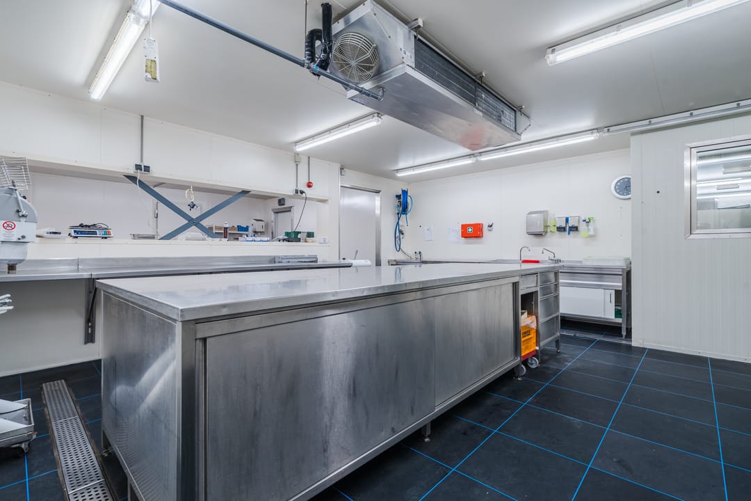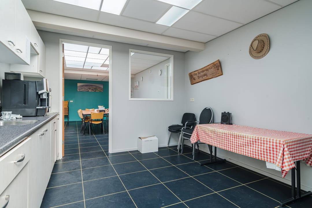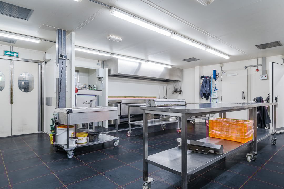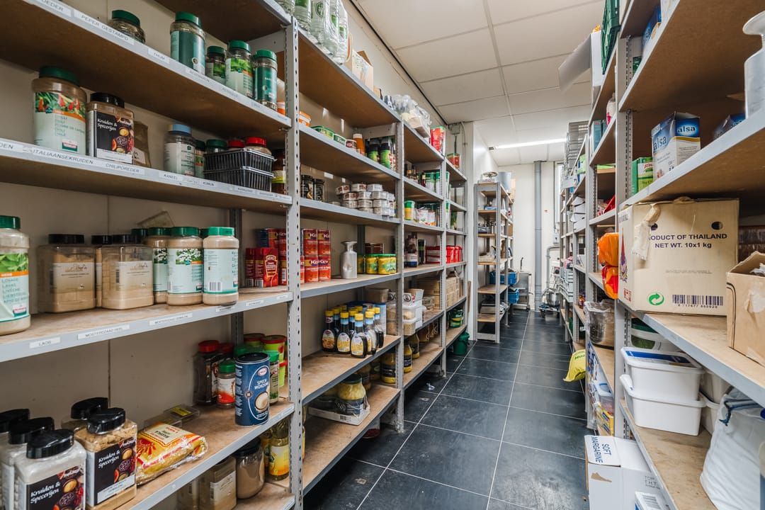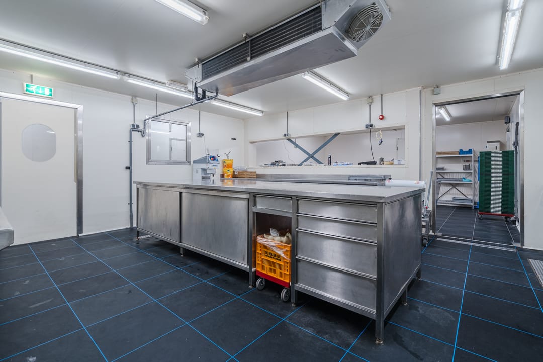 - Een royale loods voor opslag van materialen, benodigd voor grootschalige cateringopdrachten of voor de verhuur.