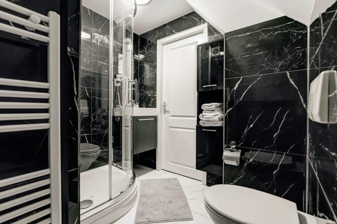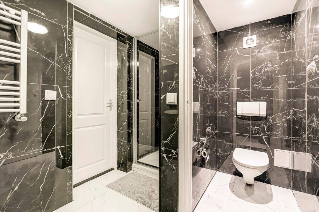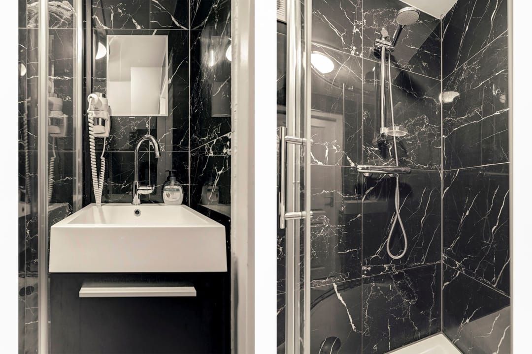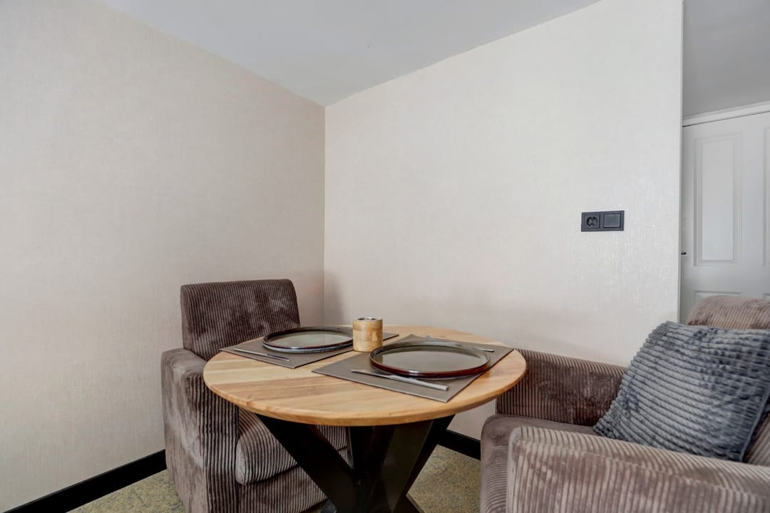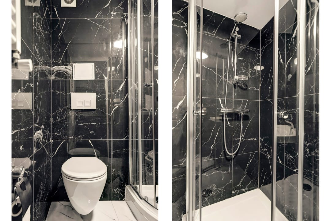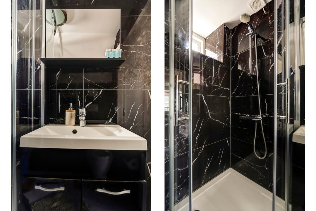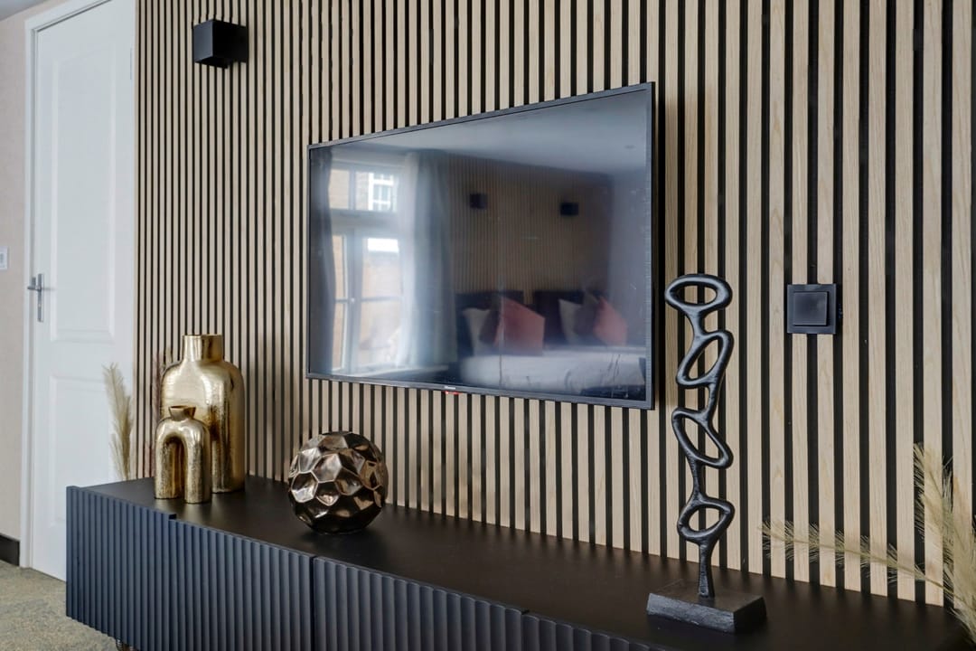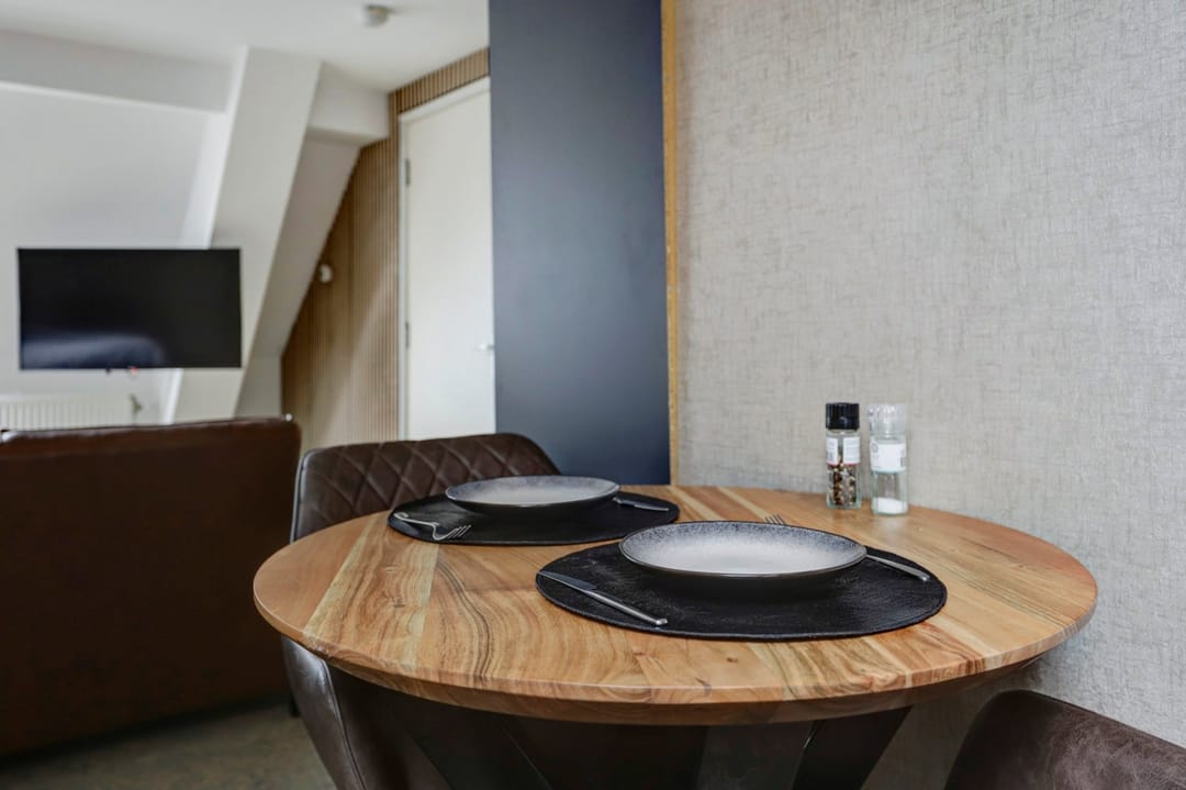 “Gelagkamer” airco; keukenblok met koelkast; luxe badkamer met douchecabine, wastafel in meubel, handdoekradiator en inpandig separaat zwevend toilet.