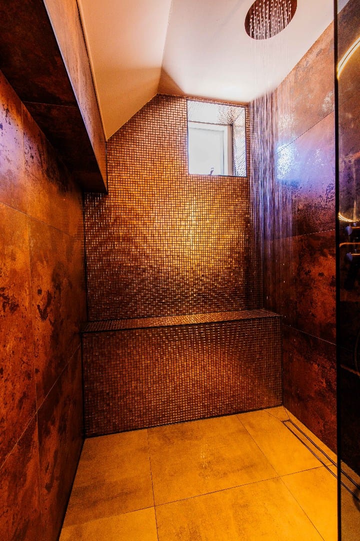 kamer 1: voorzien van 2 dakramen, airco en “keukenblok” met koelkast; luxe badkamer met douchecabine, wastafel in meubel, zwevend toilet en handdoekradiator.