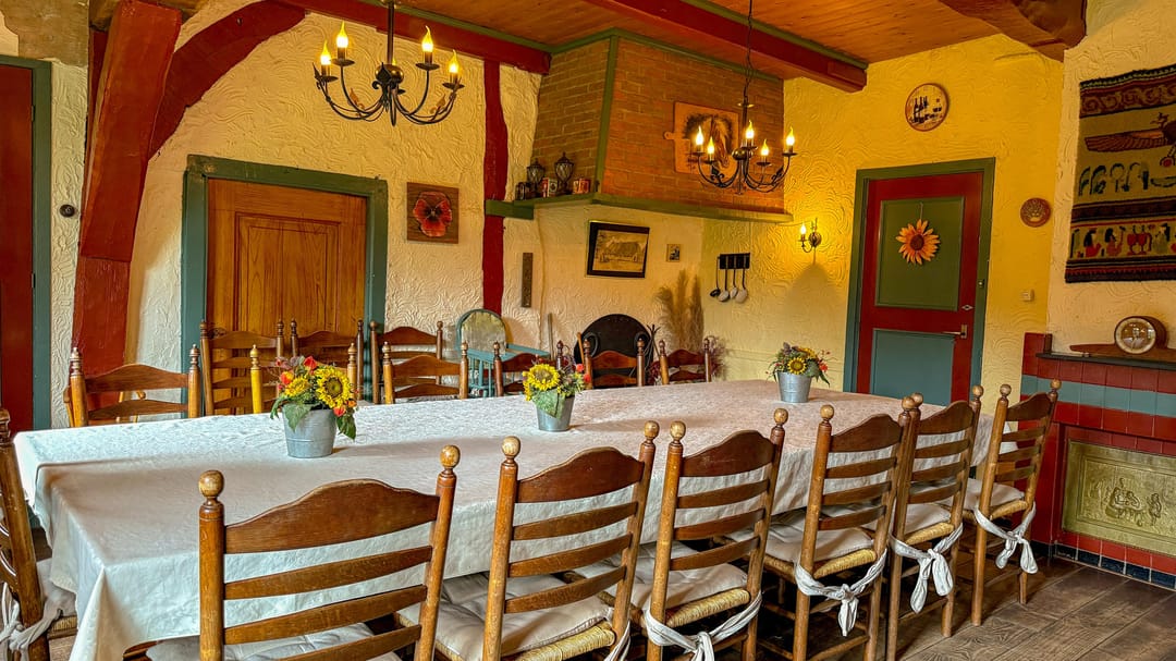 • Een sfeervolle, volledig ingerichte ruime keuken met alle apparatuur en inventaris.