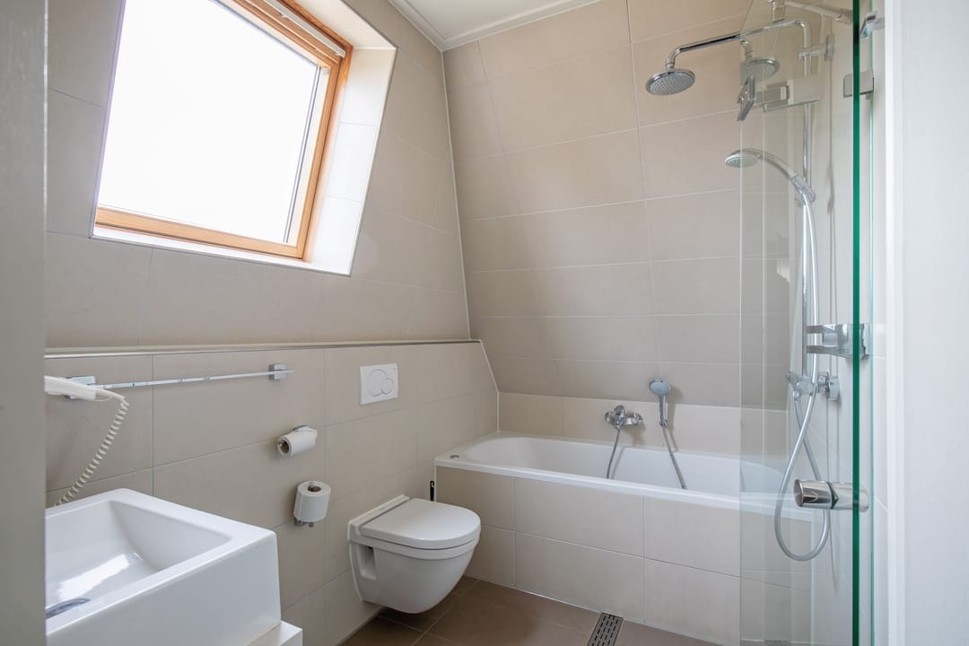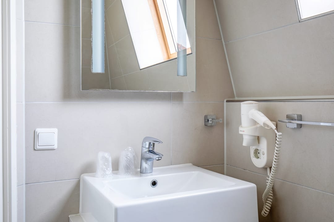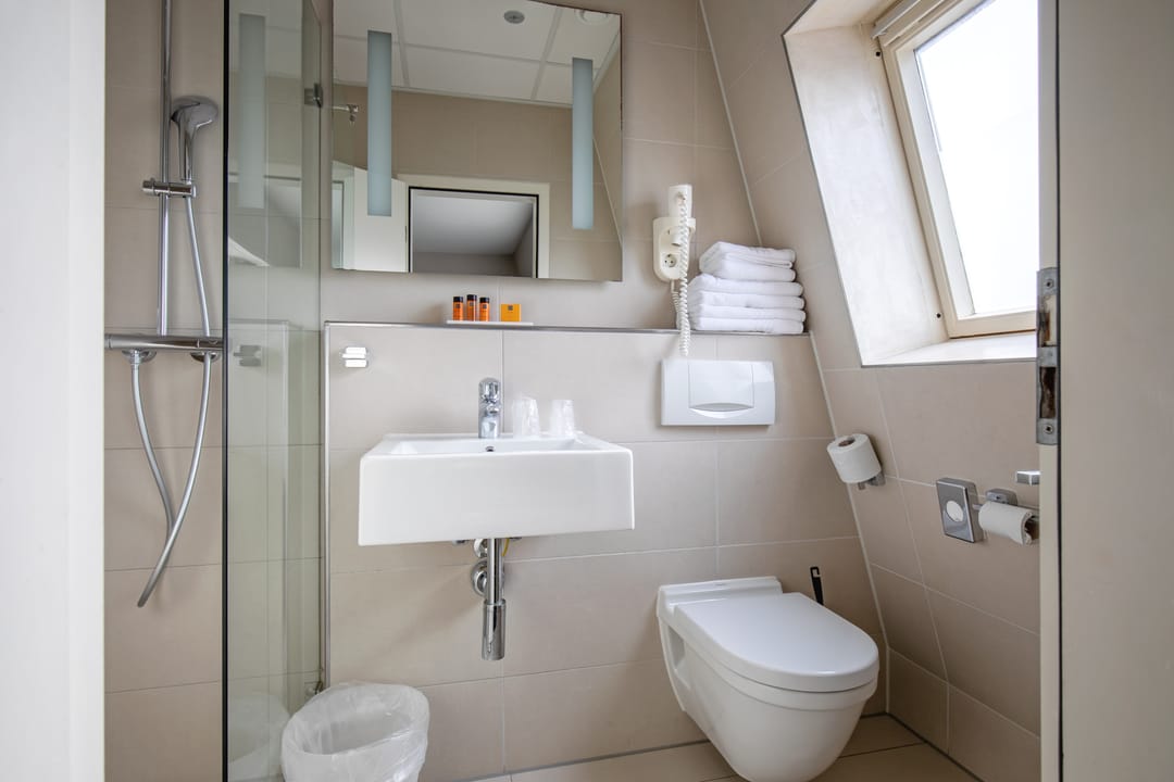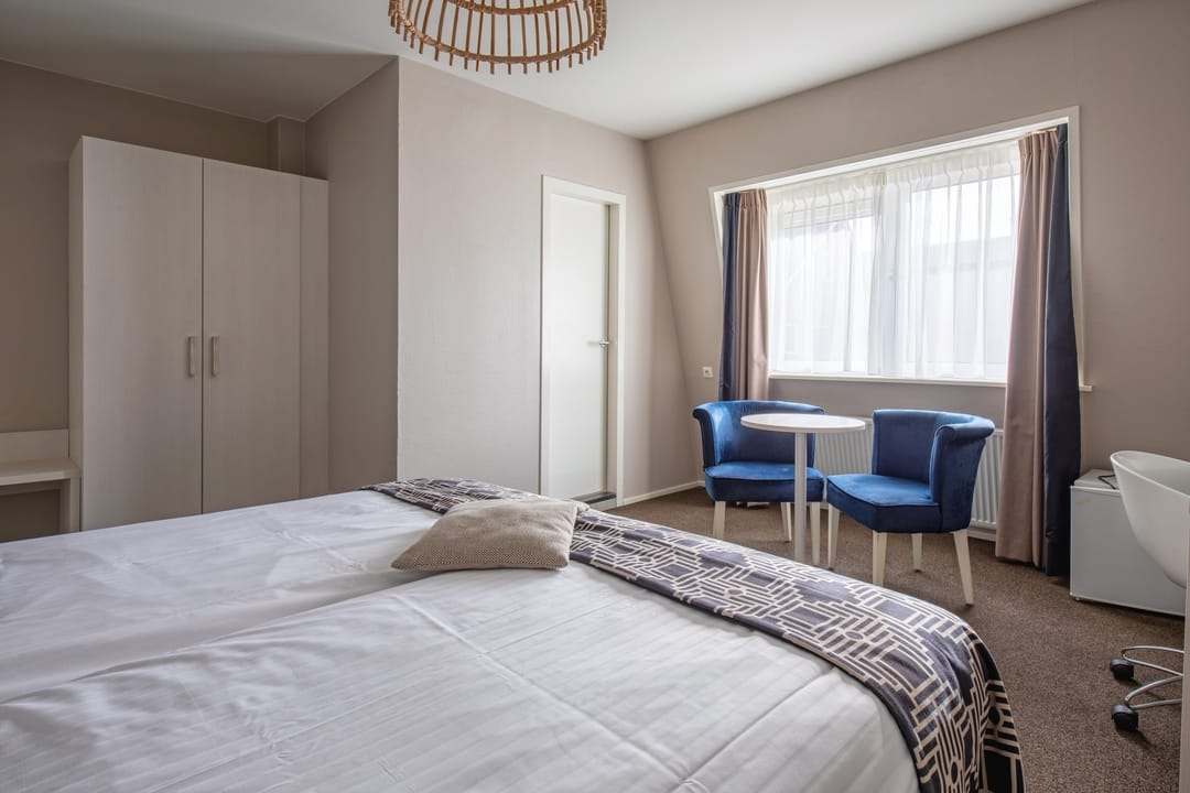 De hotelkamers zijn verdeeld over drie bouwlagen en er is een lift aanwezig in het gebouw. De twee zolders zijn ingericht als bergzolder en via een vlizotrap te bereiken.