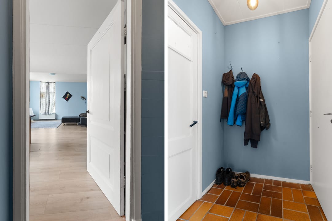 De woning aan de Spoorstraat 2 is gesplitst in 2 woningen met een gezamenlijke ingang.