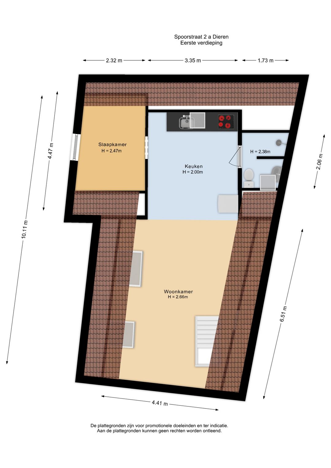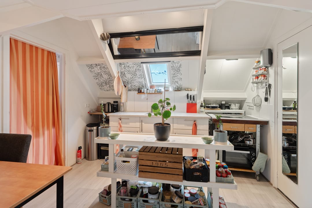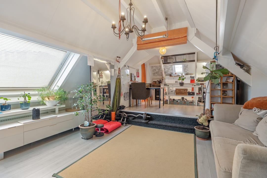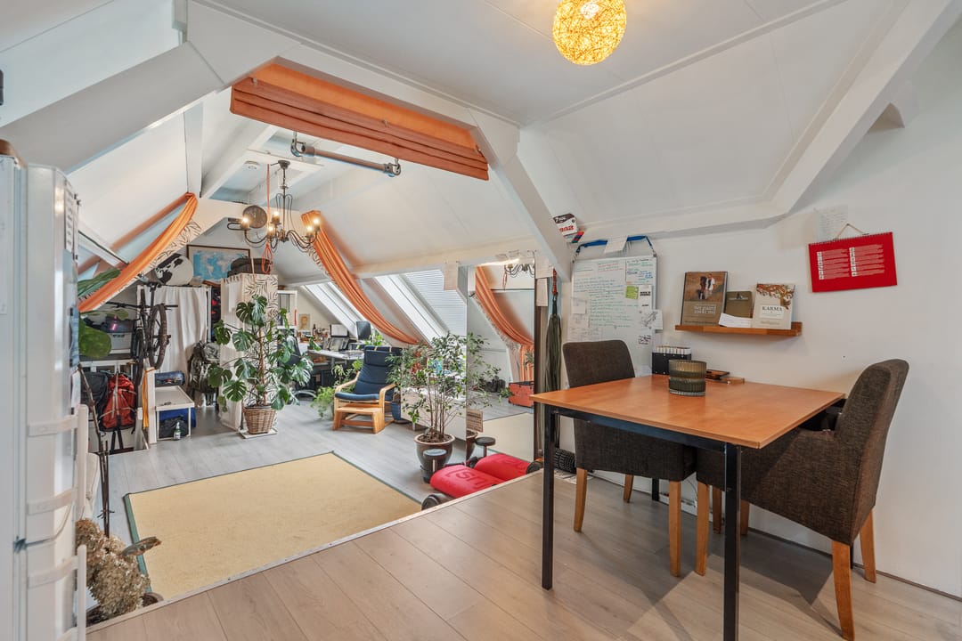 gelegen op de etage, loft met toilet, douche, woonkamer en slaapkamer.