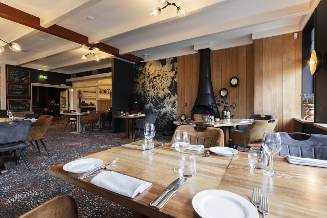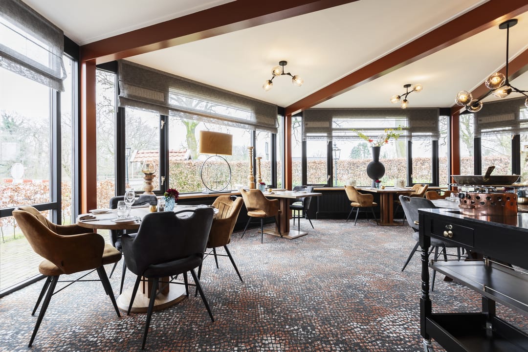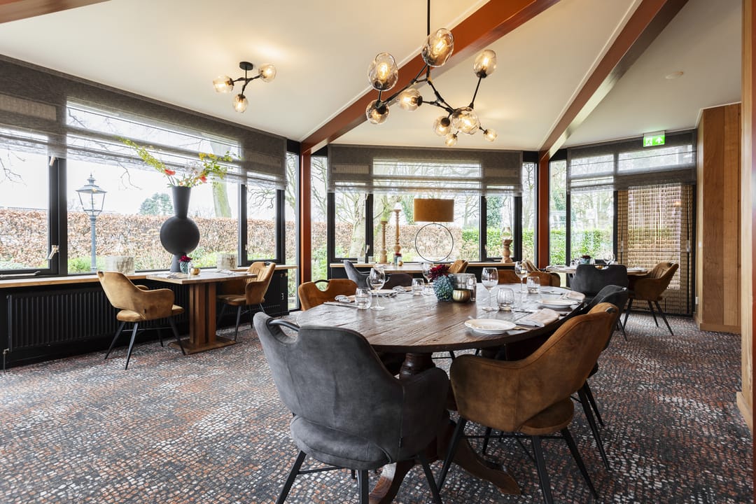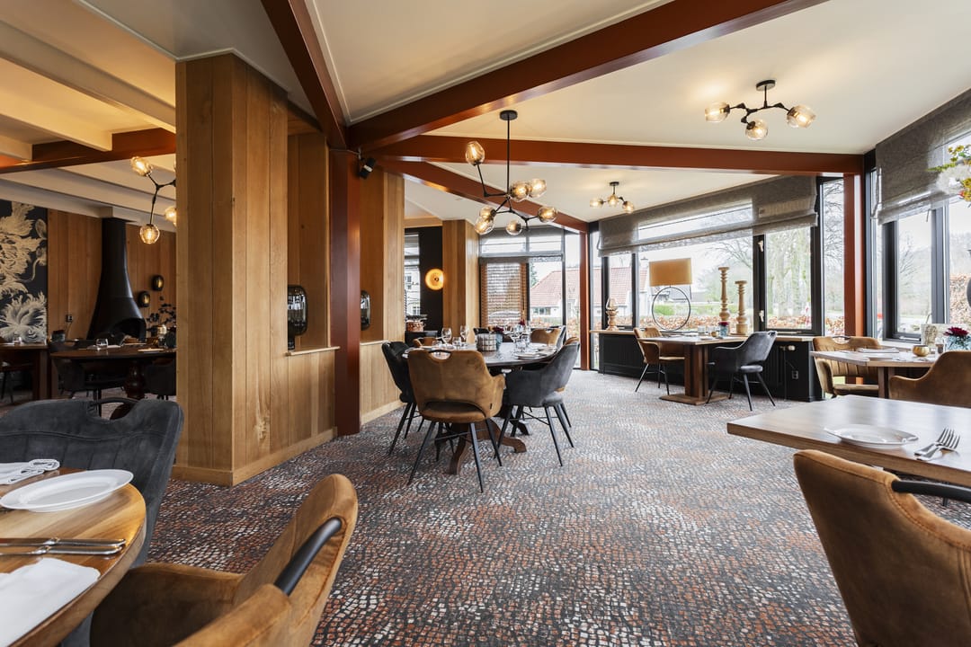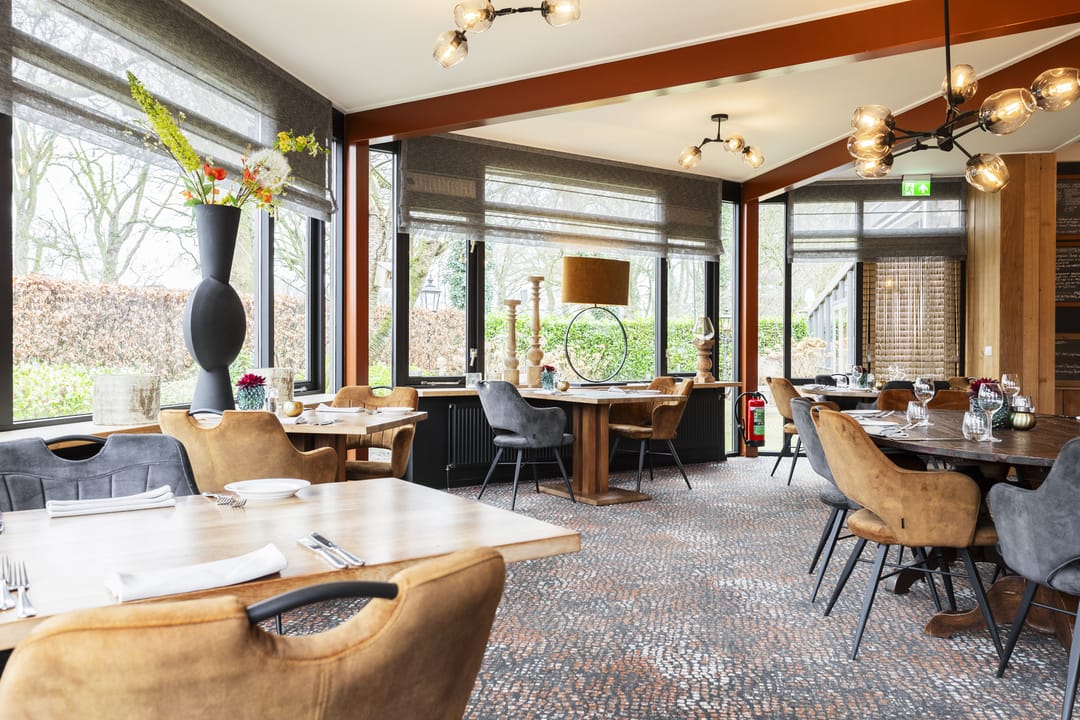 De indeling van dit restaurant is logisch te noemen. Vanaf de parkeerplaats direct voor het object, komt men via een ruime hal in het gedeelte terecht waar zich prominent de bar bevindt. Vanuit hier is een open ruimte gecreëerd naar het sfeervolle restaurant, dat zich mede door de aangrenzende serre kenmerkt door veel lichtinval en een ruime tafelopstelling. Het restaurant is verdeeld in meerdere ruimtes, die afzonderlijk van elkaar geopend en gesloten kunnen worden. Aan de achterzijde bevindt zich nog een zaal, welke ook als restaurantgedeelte is ingericht.