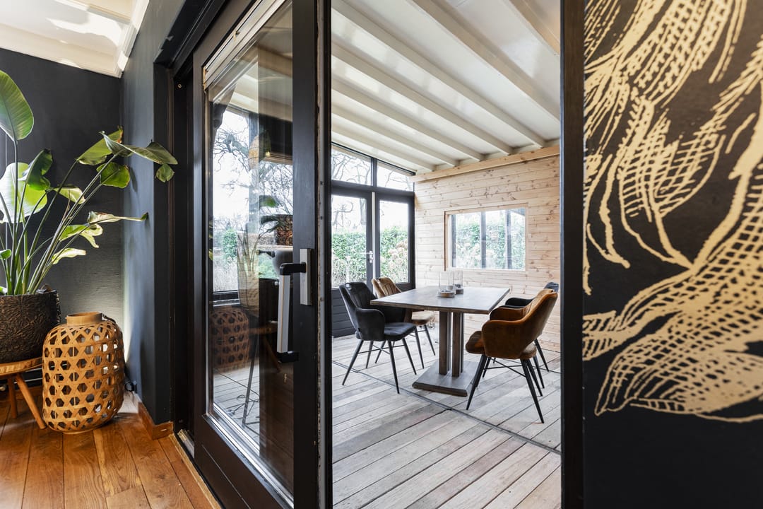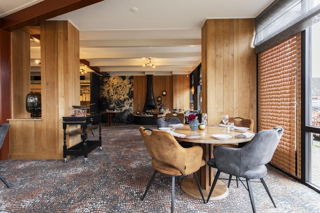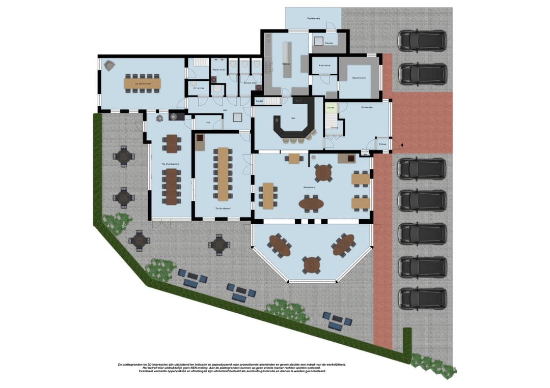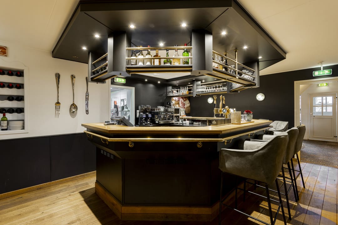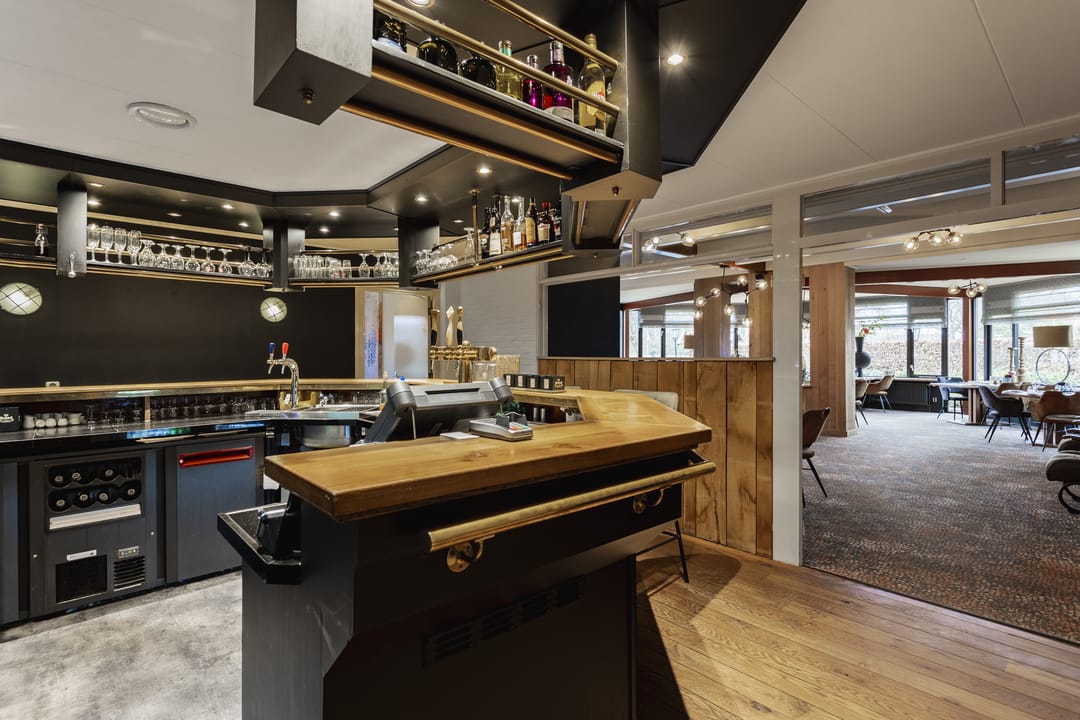 De indeling van dit restaurant is logisch te noemen. Vanaf de parkeerplaats direct voor het object, komt men via een ruime hal in het gedeelte terecht waar zich prominent de bar bevindt. Vanuit hier is een open ruimte gecreëerd naar het sfeervolle restaurant, dat zich mede door de aangrenzende serre kenmerkt door veel lichtinval en een ruime tafelopstelling. Het restaurant is verdeeld in meerdere ruimtes, die afzonderlijk van elkaar geopend en gesloten kunnen worden. Aan de achterzijde bevindt zich nog een zaal, welke ook als restaurantgedeelte is ingericht.