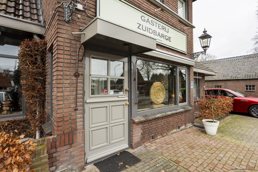 Het pand waarin Gasterij Zuidbarge is gevestigd, is gebouwd in 1927. De gebruiksfunctie is altijd een vorm van horeca geweest. In eerste instantie een dorpscafé, later een restaurant. Het betreft een klassiek pand met een imposant uiterlijk, traditioneel gebouwd met gemetselde gevels en een grotendeels pannen gedekt zadeldak. Aan de voorzijde beschikt het pand over een uitbouw, waarbij het dak pas vanaf de tweede verdieping begint. Aan de achterzijde beschikt het pand over meerdere aanbouwen en een uitbreiding in de vorm van een serre aan de zijkant. De naastgelegen schuur behoort niet toe aan het aangebodene.