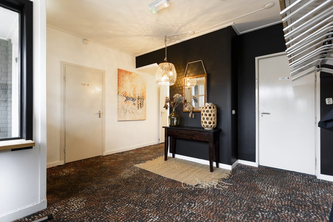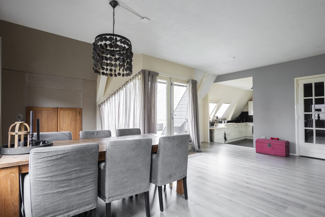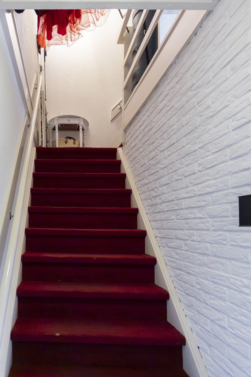 In de hal bereikt men via de trap een zeer ruime bovenwoning bestaande uit een hal met toilet, keuken, woonkamer, badkamer met ligbad, 3 slaapkamers en een groot dakterras.