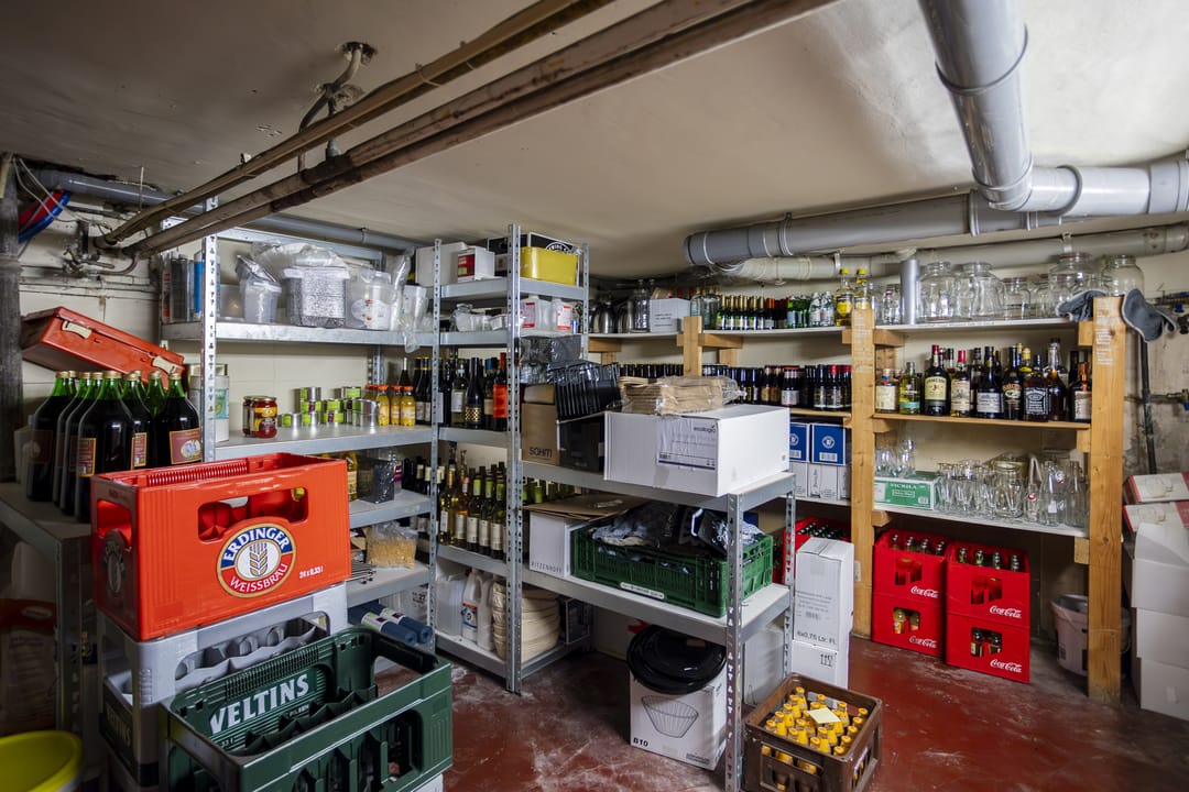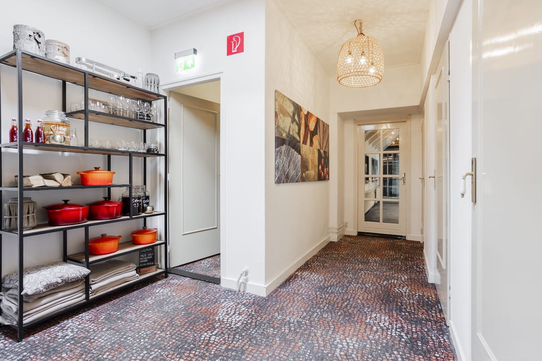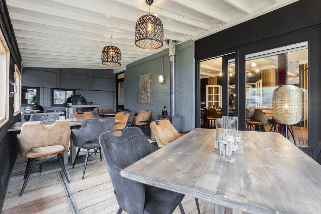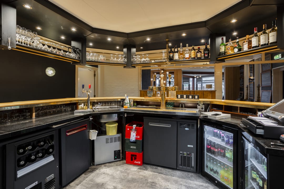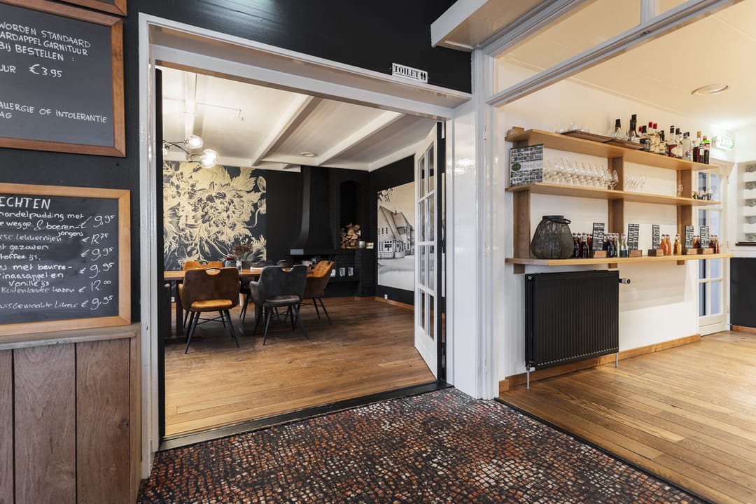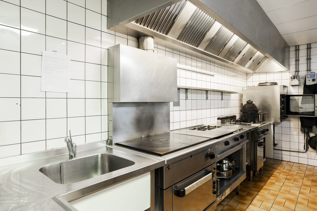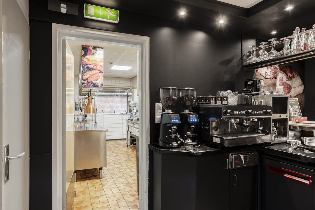 In het midden van de diverse restaurantgedeeltes bevindt zich de ruim opgezette en volledig geoutilleerde keuken, met afzonderlijk spoelgedeelte. Tot slot beschikt de begane grond over moderne toiletgroepen. In de kelder en een zolder is opslagruimte voorhanden, terwijl aan de zijkant van het object nog een besloten terras is gesitueerd.