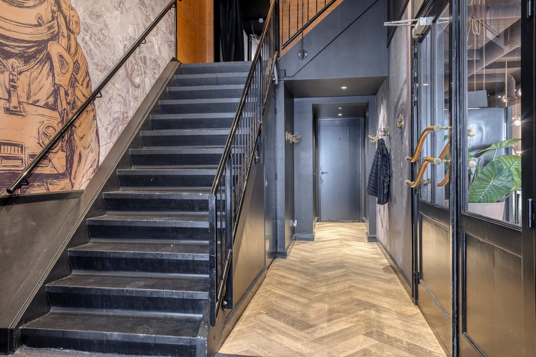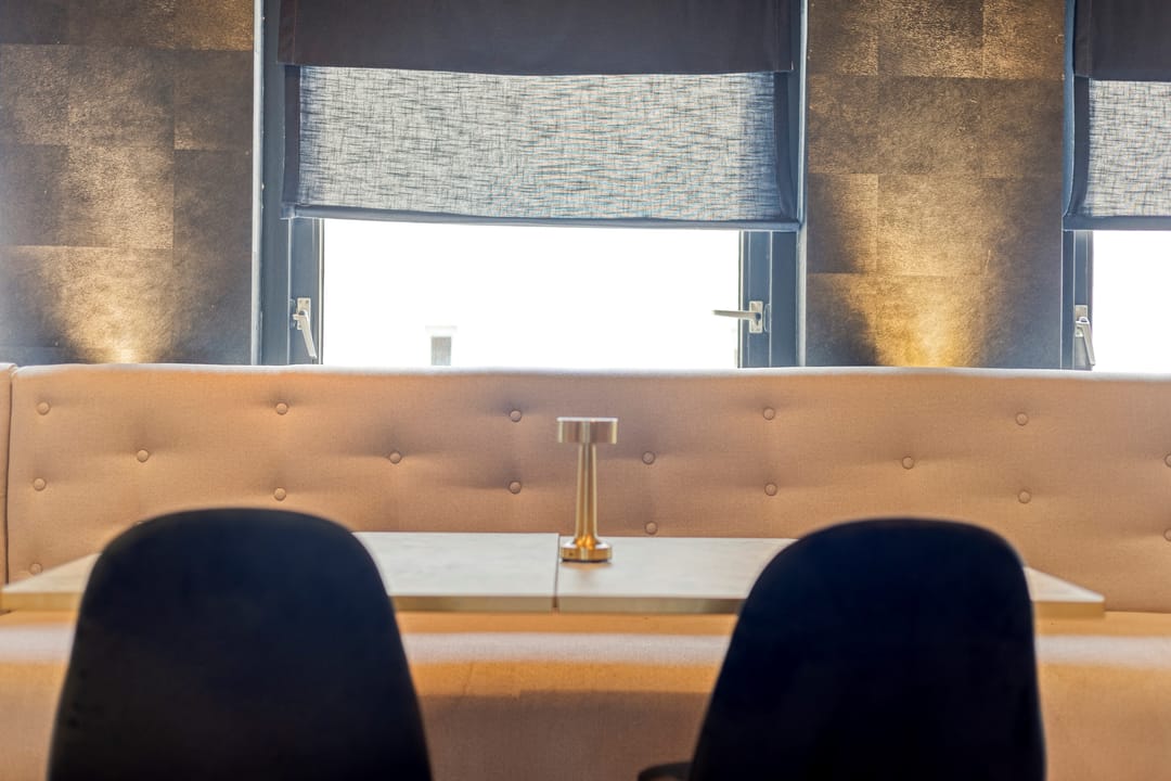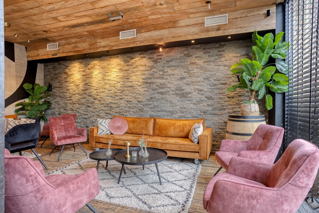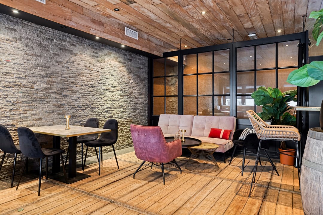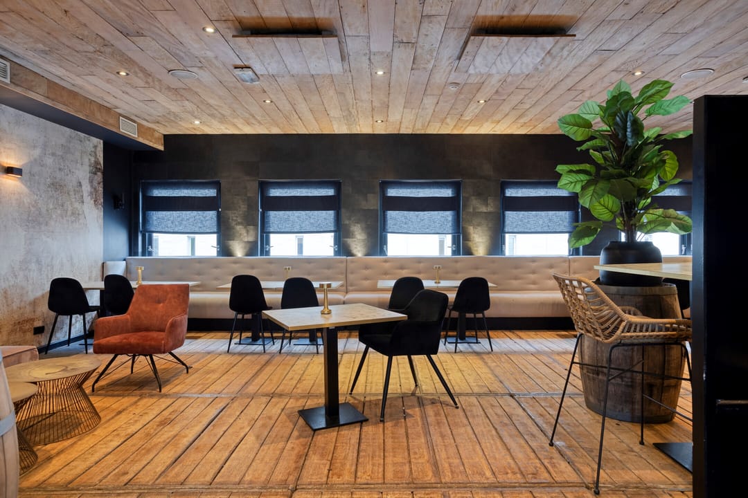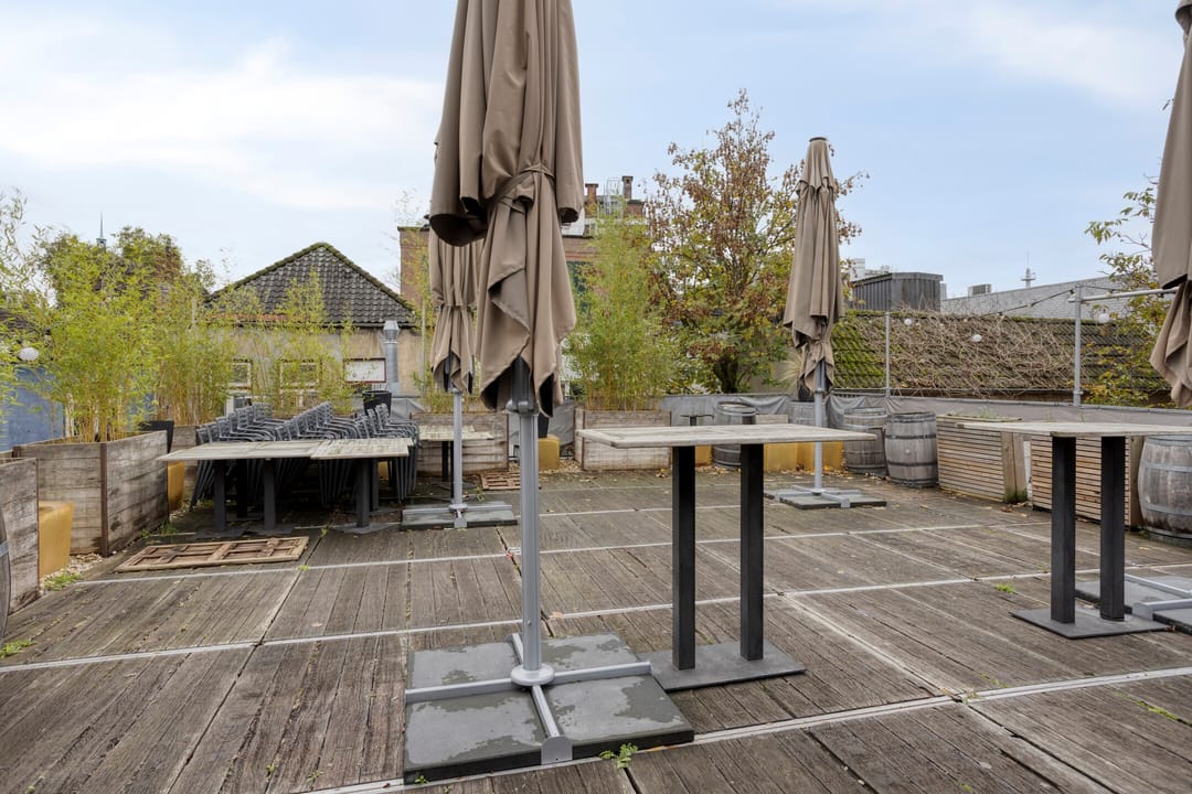 Op de eerste verdieping ligt een uniek dakterras waar je zomers de zon pakt en intiem dineert, uit de wind, in de luwte. Aangrenzend bevindt zich een aparte ruimte met bar: perfect voor private dining, borrels en intieme vieringen — tot en met een bruiloft in klein comité. Ook dat maakt BRUUT tot een veelzijdig podium voor een ambitieuze ondernemer.